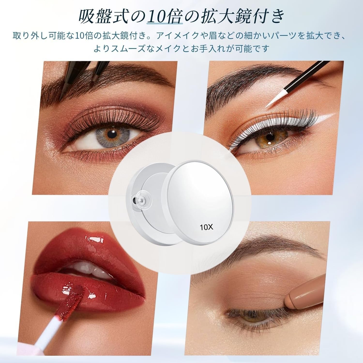 化粧鏡 20倍拡大鏡付き 吸盤付き拡大ミラー 手鏡 折りたたみ スタンド付き 白 直径15cm 化粧用卓上鏡 拡大鏡 吸盤付き 洗面所 浴室 風呂 ホテル 化粧台 壁鏡に取り付け可能