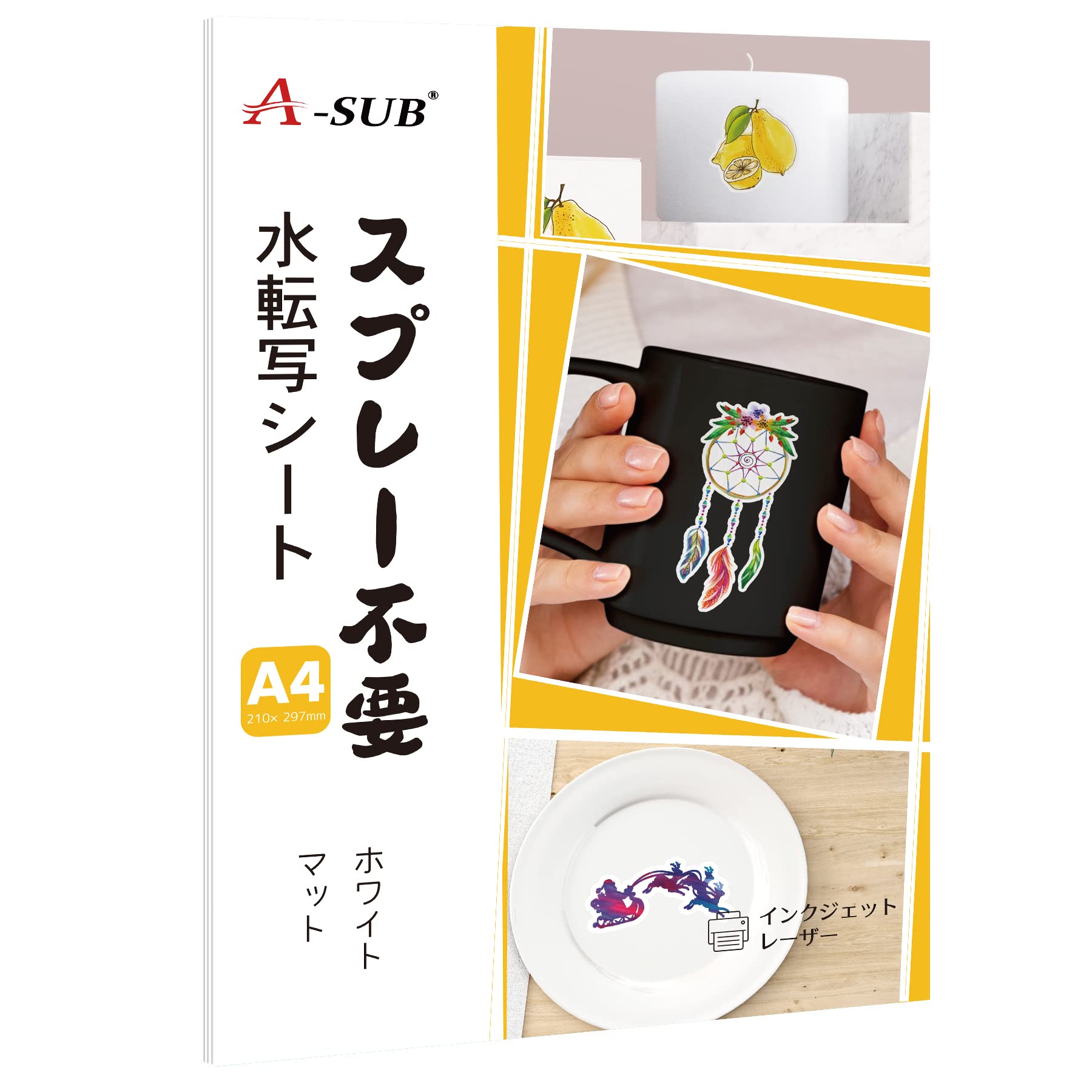 A-SUB スプレー不要 水転写シート マット インクジェットやレーザープリンター両用 白 ホワイト クリアアクリル必要ない水転写デカール A4 5枚 水転写紙 DIY
