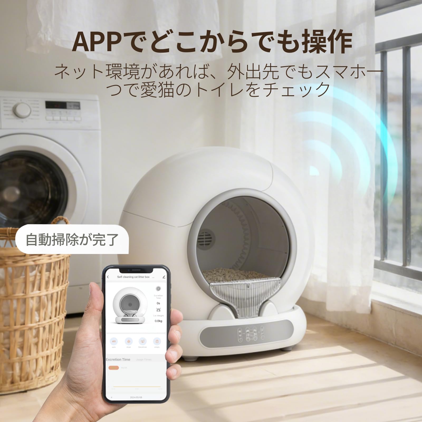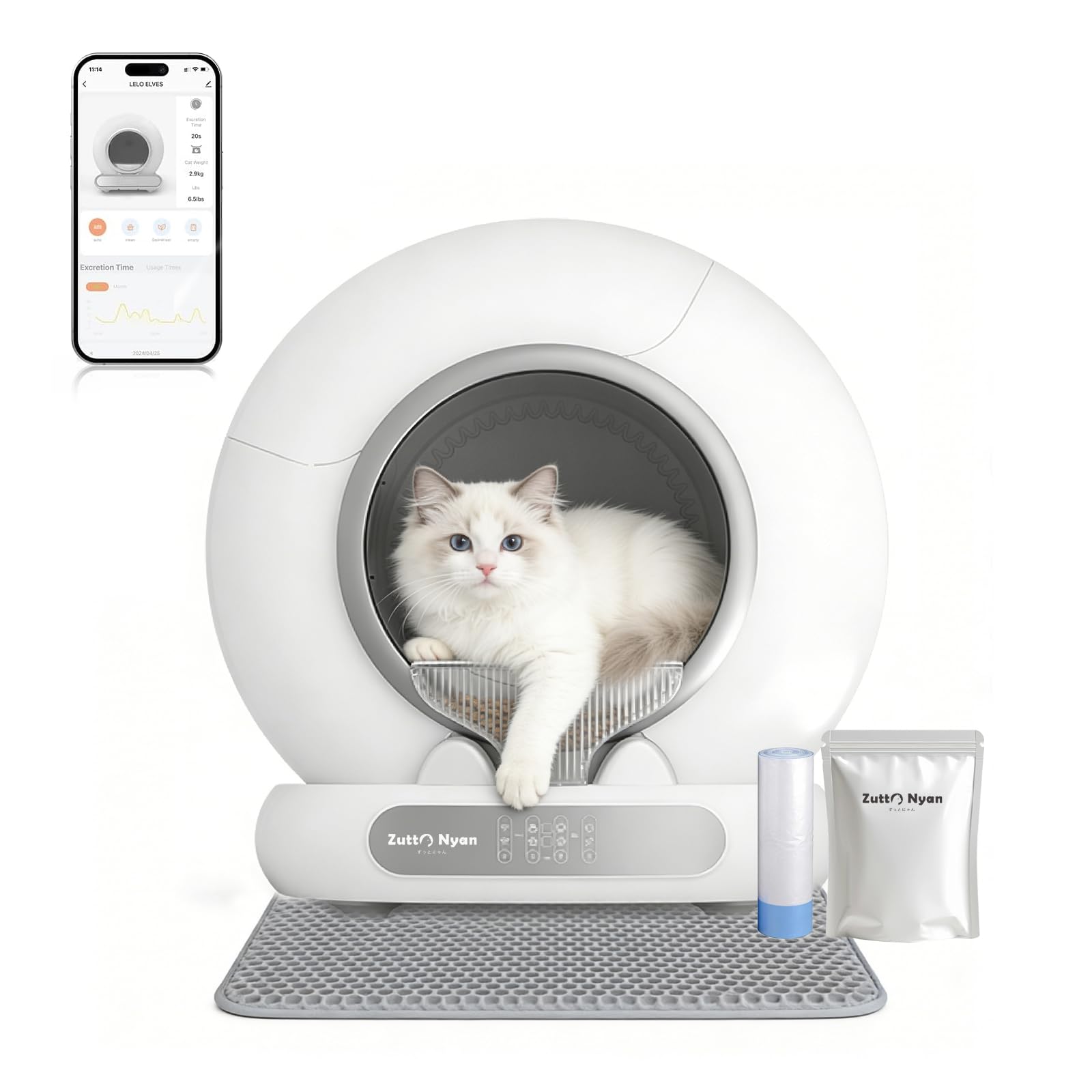 Zutto Nyan 猫 トイレ 自動トイレ オシッコが漏れない 猫自動トイレ 開封後にすぐ使える 強力脱臭 猫自動トイレ 自動清掃 掃除簡単コンパクトで軽量、収納に便利 全自動猫トイレ お留守番対策 遠隔操作 専用APP IOS/Android対応 猫用トイレ 大容量 多頭飼い対応 お手入れ簡単 日本語説明書付き 1年間のメーカー保証とカスタマーサポート