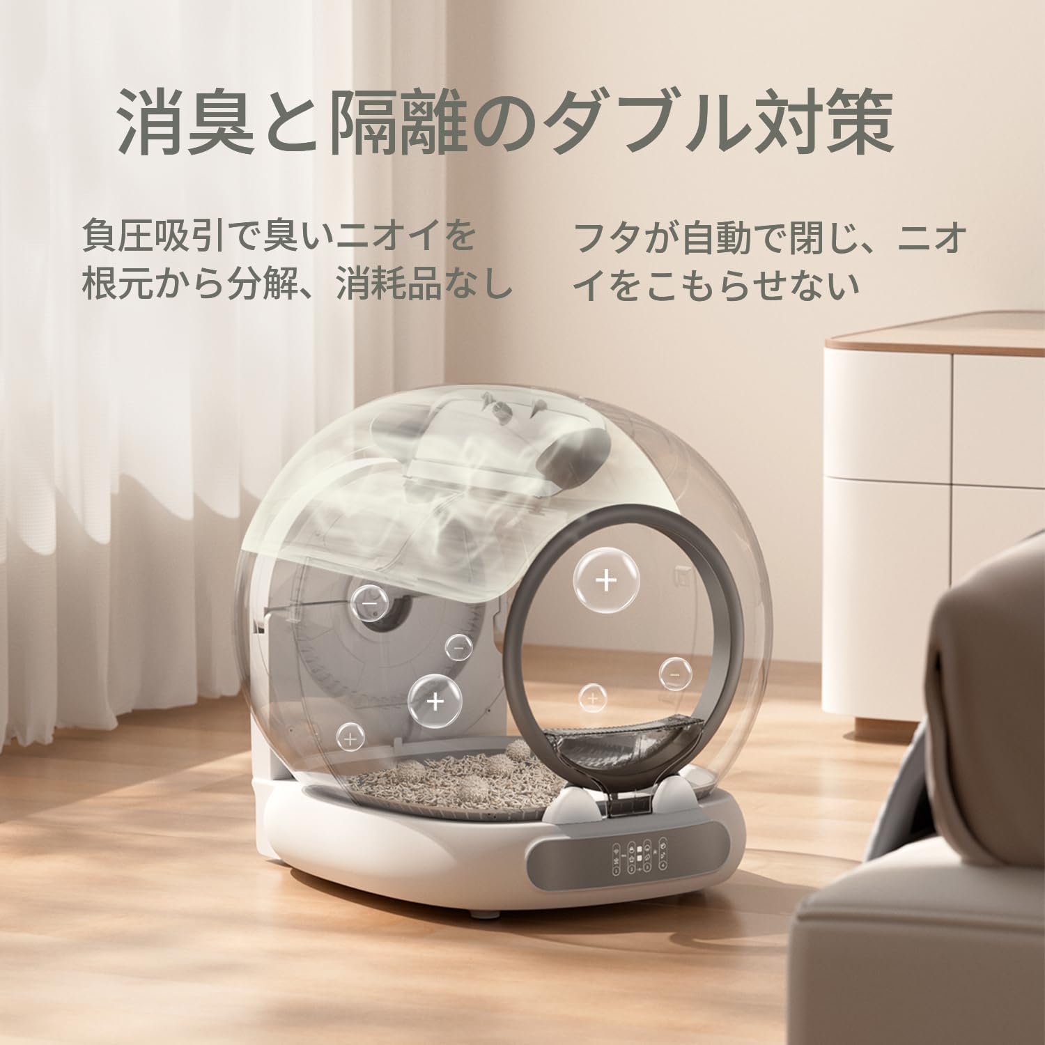 YIZENTURY 自動掃除猫砂箱、75L特大容量(48x55x61cm)、WiFi APP制御、ごみ袋付き無臭自動猫砂箱