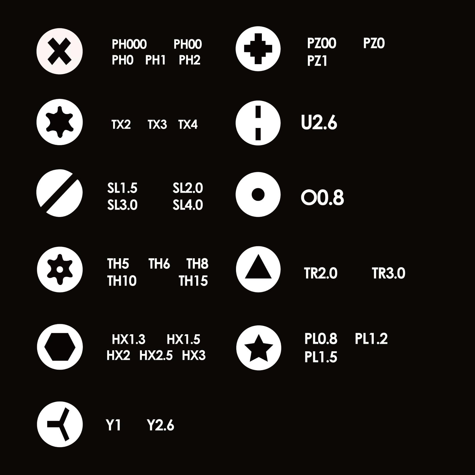 ミニサイズで収納や持ち運びに便利。先端精密加工によりネジを舐めにくい。ビット先端にマグネット付き、作業中のネジ脱落防止。【セット内容】・収納ケース(110x45x30mm)・ベアリングドライバーハンドル・4mm六角軸ビット34pcs+/000,00,0,1,2-/1.5,2,3,4PZ/000,0,1HX/1.3,1.5,2,2.5,3TX/2,3,4TH/5,6,8,10,15PL/0.8,1.2,1.5TR/2,3Y/1,2.6U/2.6O/0.8