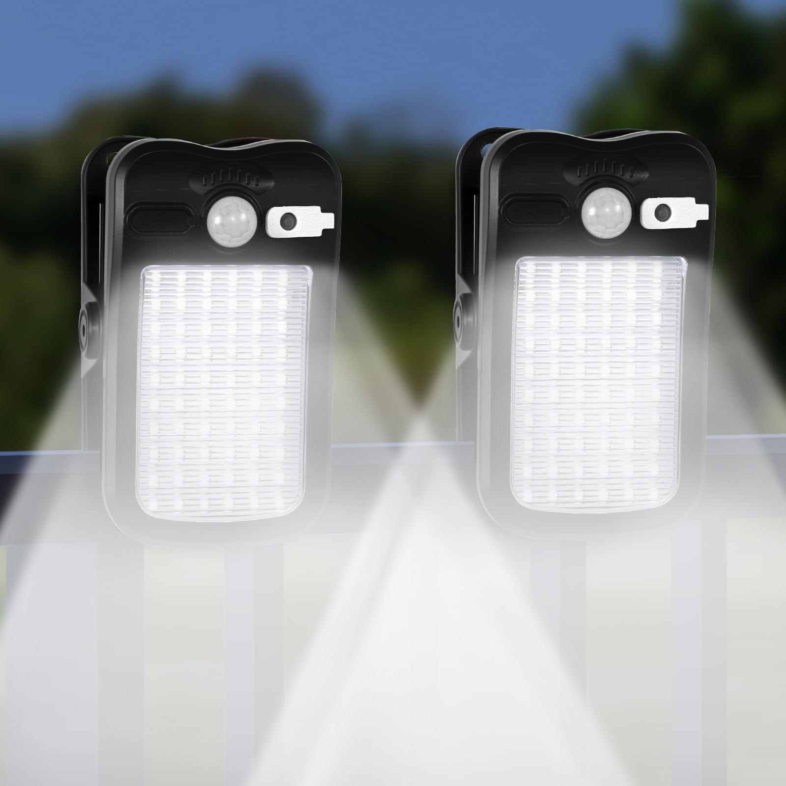 CHAMCHOI ソーラーライト 屋外 防水 クリップ式 センサーライト 屋外 ソーラー 人感 防犯らいと 太陽光充電USB充電 2000mAh大容量電池 60LED 3つ知能モード IP65防水 600ルーメン 超高輝度 玄関/駐車場/庭/フェンス/キャンプ用(2個セット,昼白色)