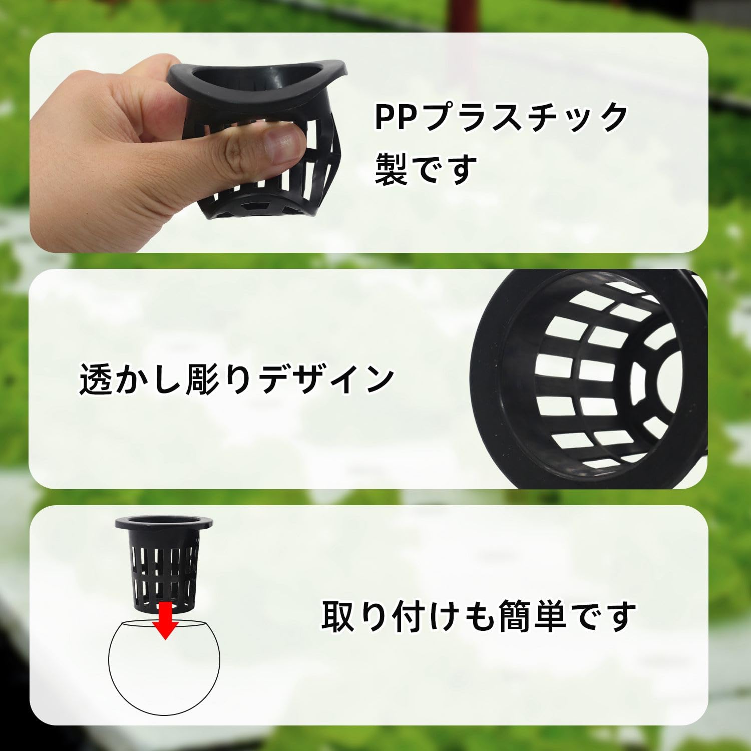 KKLM 水耕栽培鉢 定植かご プラスチックメッシュポット 水耕栽培ポット 50個セット 水耕栽培や庭園で便利に使用可能 軽量で移動しやすい や花の栽培に最適 有機栽培向け 苗を運ぶのも楽々 使いやすい植物育成用の器具