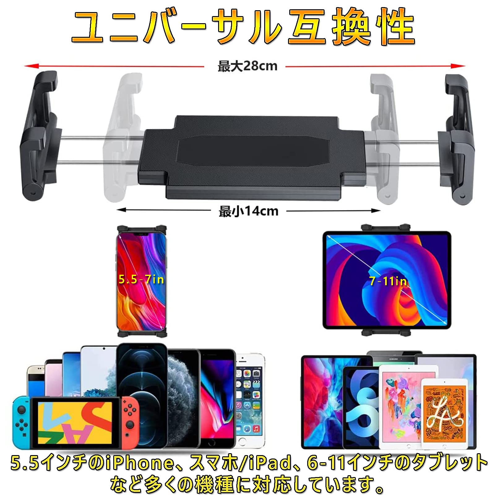 車載ホルダー タブレット クリップ式 2in1 車載スマホホルダー 360度回転 しっかり固定 サンバイザーホルダー 後部座席使用可能 Android iPhone iPad Kindleなど 4.0-10インチ全機種対応