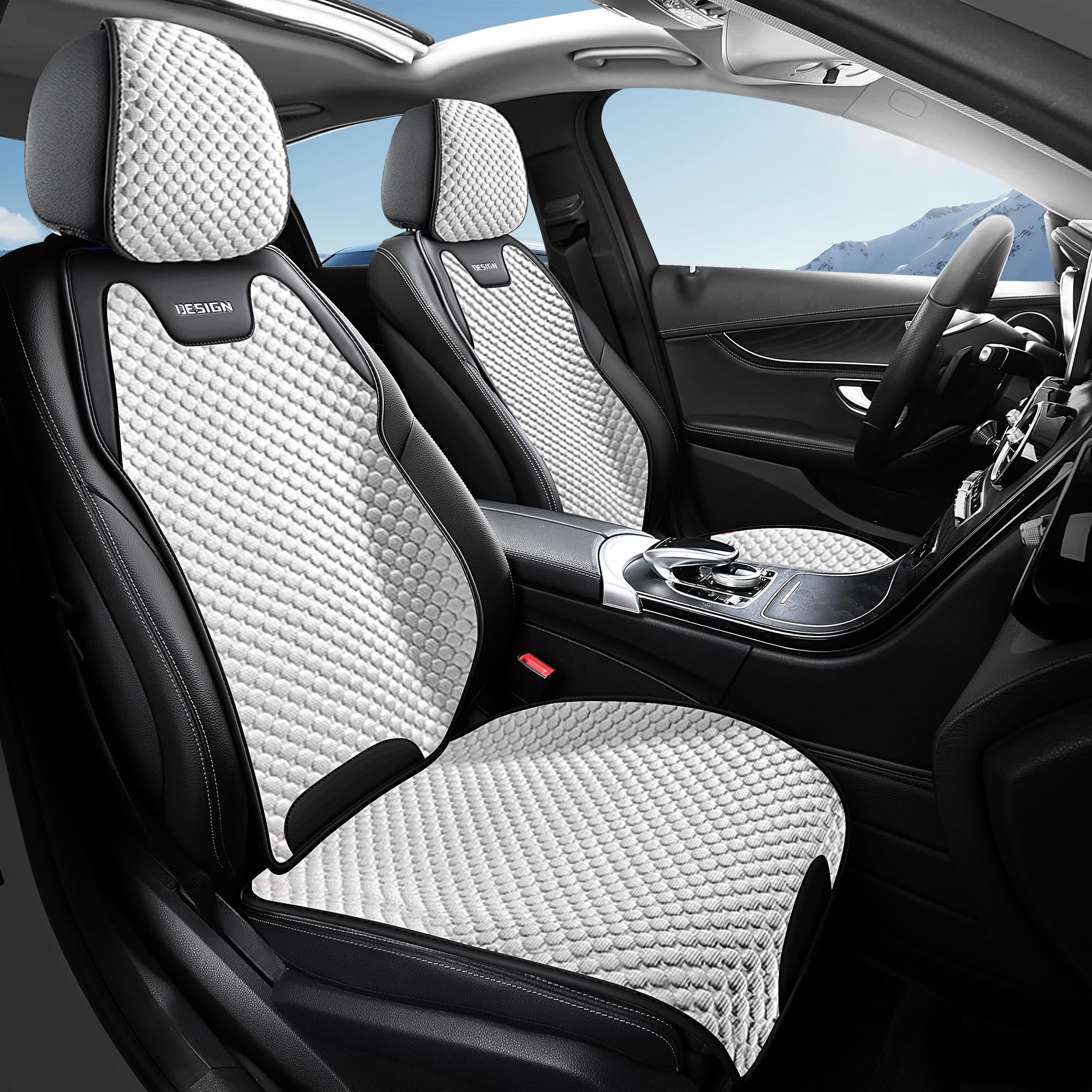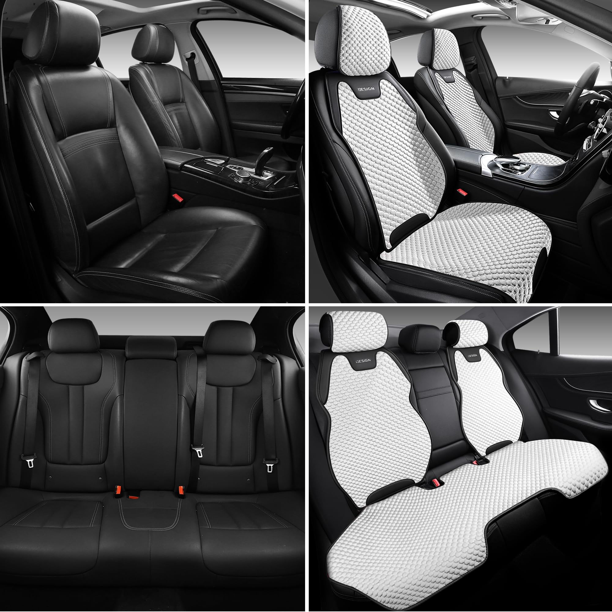 SIMGOO エプロン型 車用シートカバー 氷豆豆 防水・防汚 簡単取り付け ほとんどの車種対応 夏涼しく冬暖かい 通気性 撥水 (前席と後席, ブラックとホワイト)