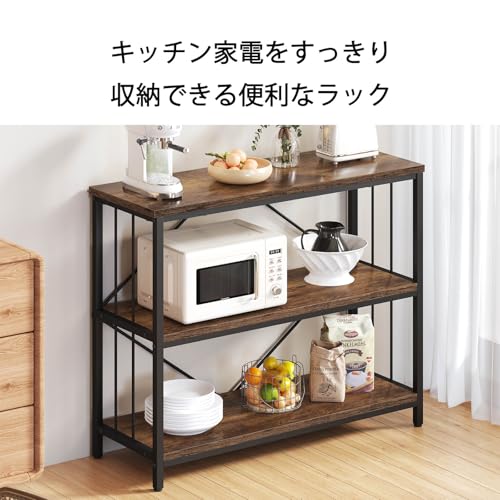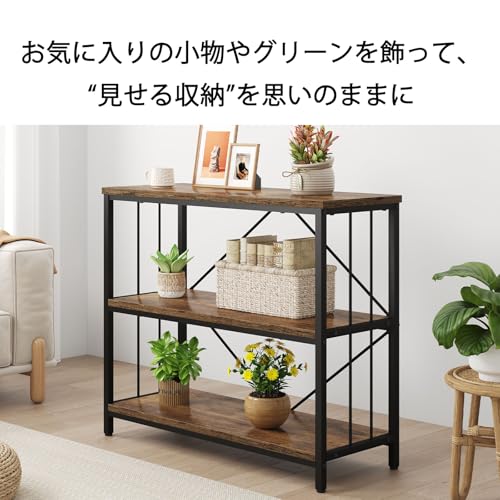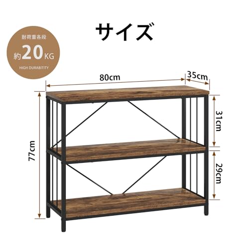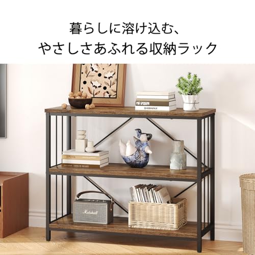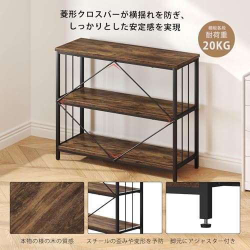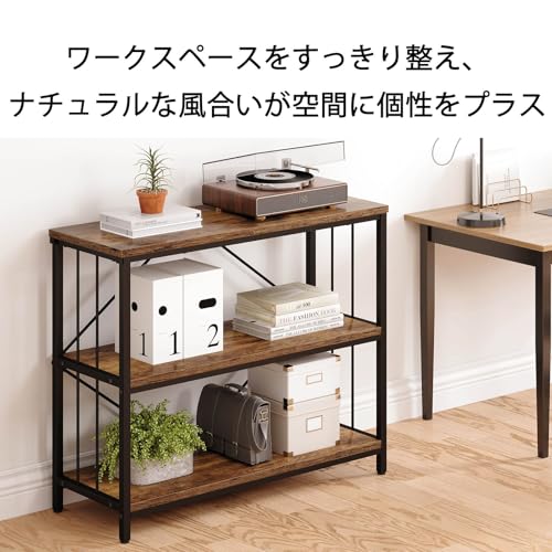 IBF オープンシェルフ 収納ラック 本棚 オープンラック リビング 棚 キッチン ラック コンパクト 多用途 耐久性 省スペース 収納便利 整理棚 シンプル おしゃれ スチール 飾り棚 3段 (ビンテージ, 80cm)