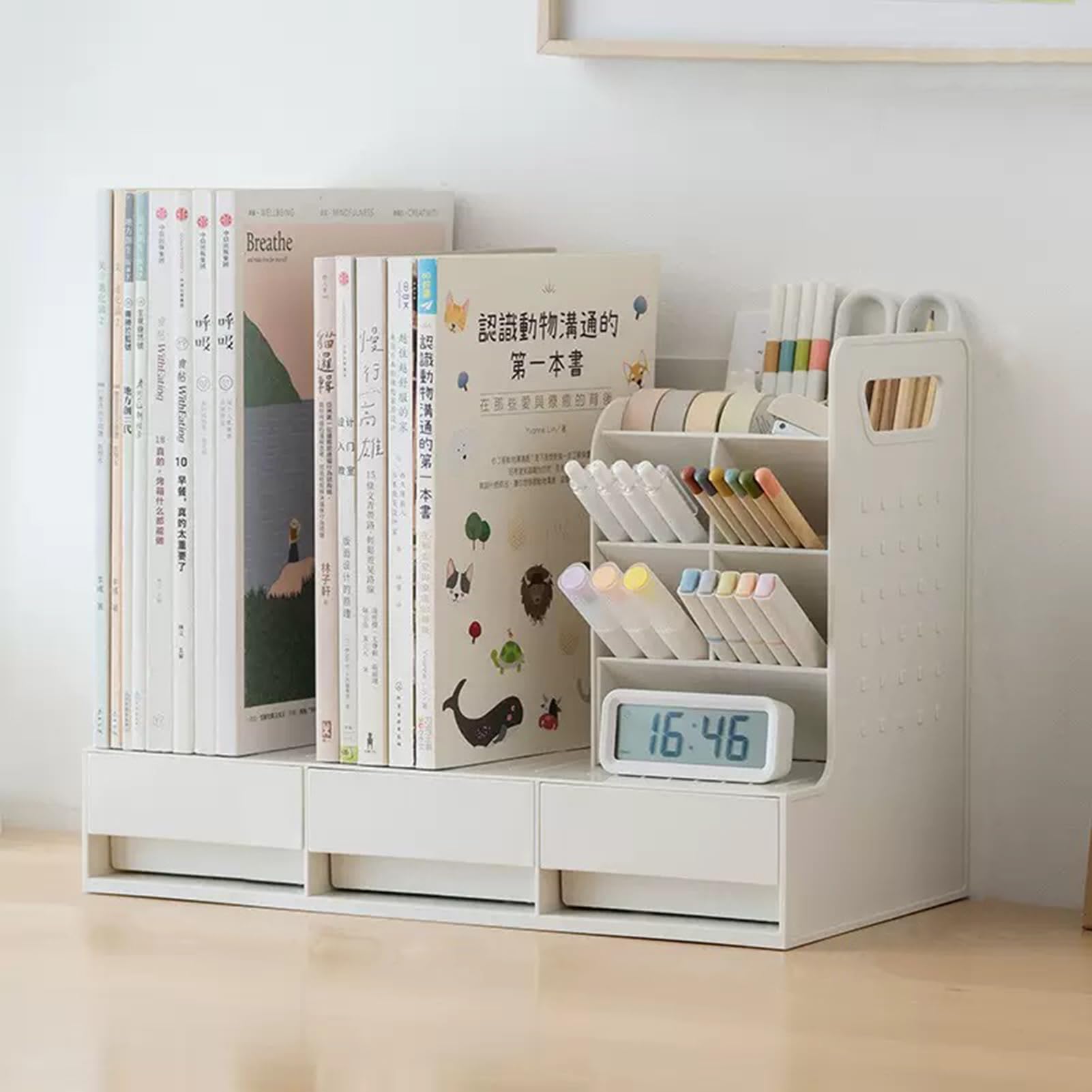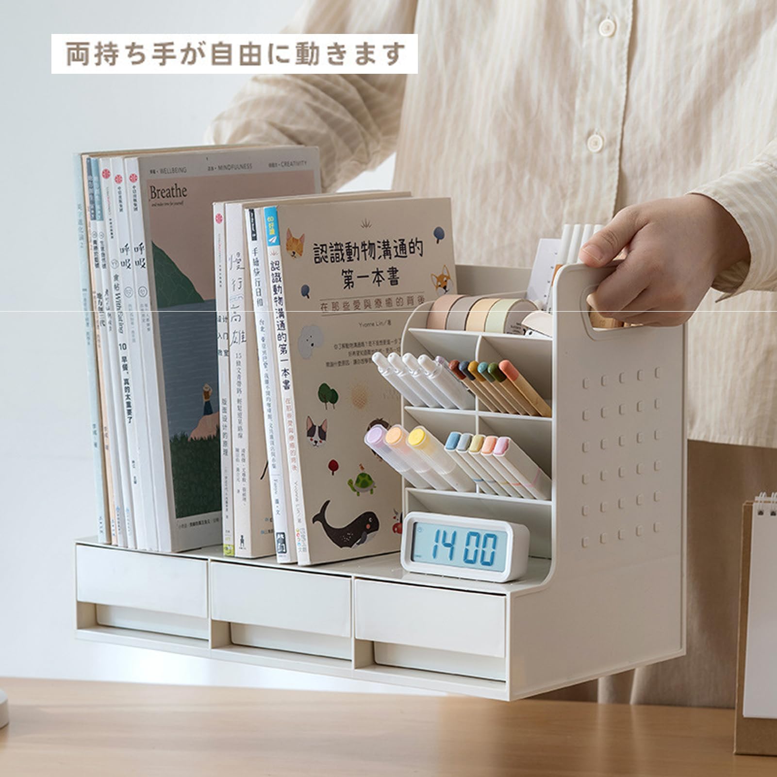 Vinnatsu 置き棚 デスク上 ブックスタンド 本立て ファイルボックス デスクオーガナイザー 収納ラック 卓上本棚 ペン立て 筆立て ホワイト A4 大容量 スリム 省スペース プラスチック 引き出し 子供用 学生向け 文房具入れ 雑誌/書類 事務用品 棚 収納ケース オフィス 学生 おしゃれ
