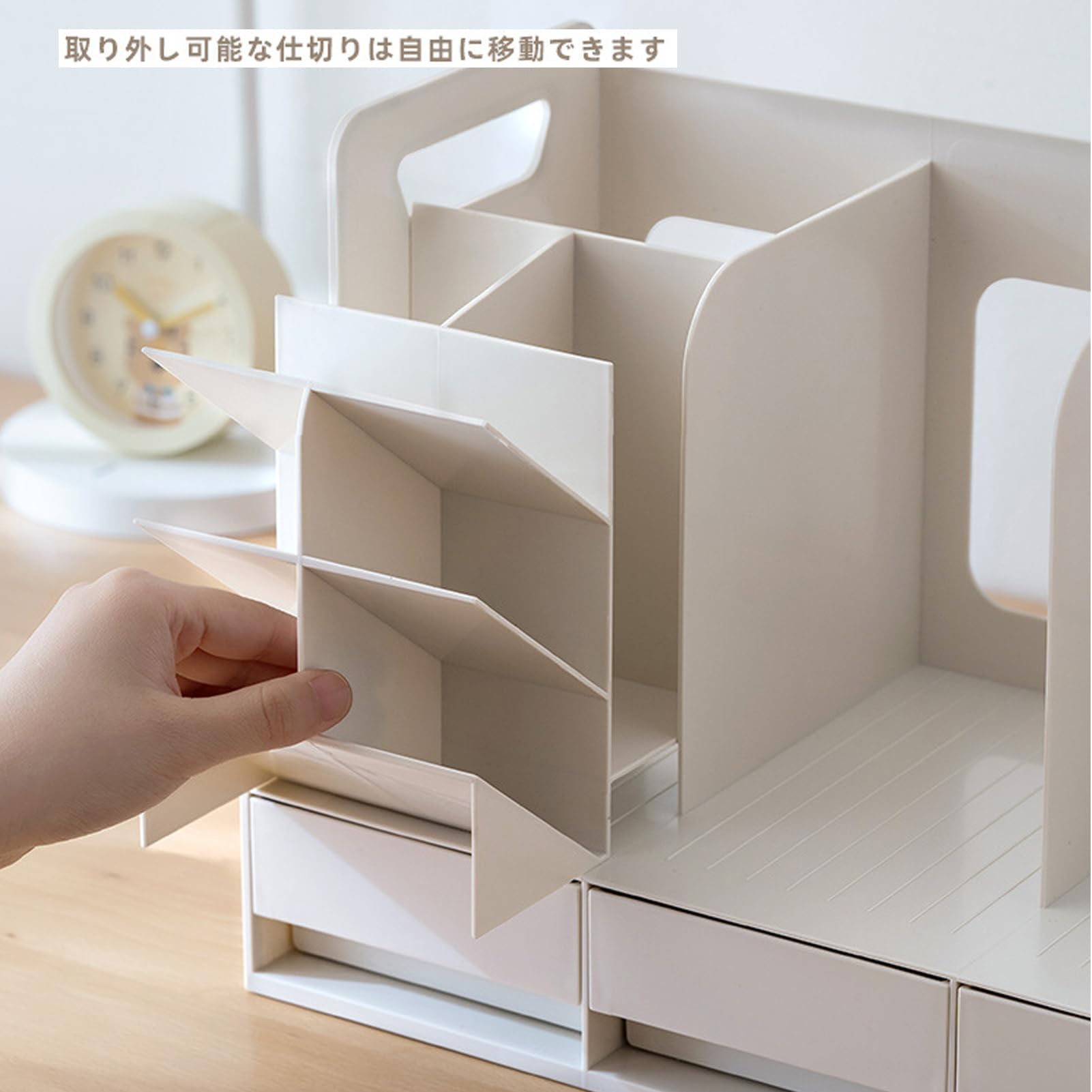 YHOMBES 卓上収納 デスクオーガナイザー 組み立て不要 デスク上置き棚 卓上置棚 デスク棚 整理整頓 オーガナイザー ペン立て 収納ボックス 棚 文房具 小物入れ 化粧品収納 多機能 机上ラック おしゃれ ブックスタンド デスク周り 収納(ホワイトA-ホワイト引き出し)