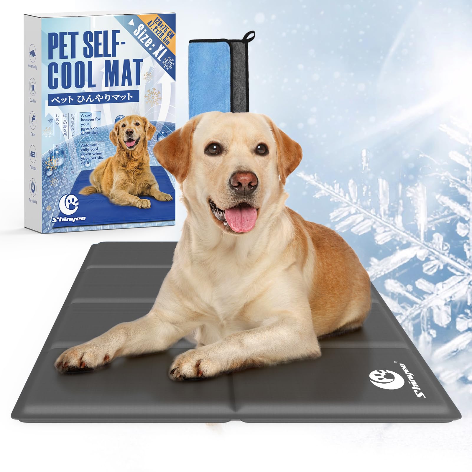 Shinyee® ペット ひんやりマット 犬 ベッド 夏 (XS-XXL)【ペット看護師監修】 クールマット 犬 猫 ペット 冷却マット 多用途 冷感ジェルマット 犬 ひんやりシート 暑さ対策 犬 熱中症対策 - グレー、XL:120x75CM