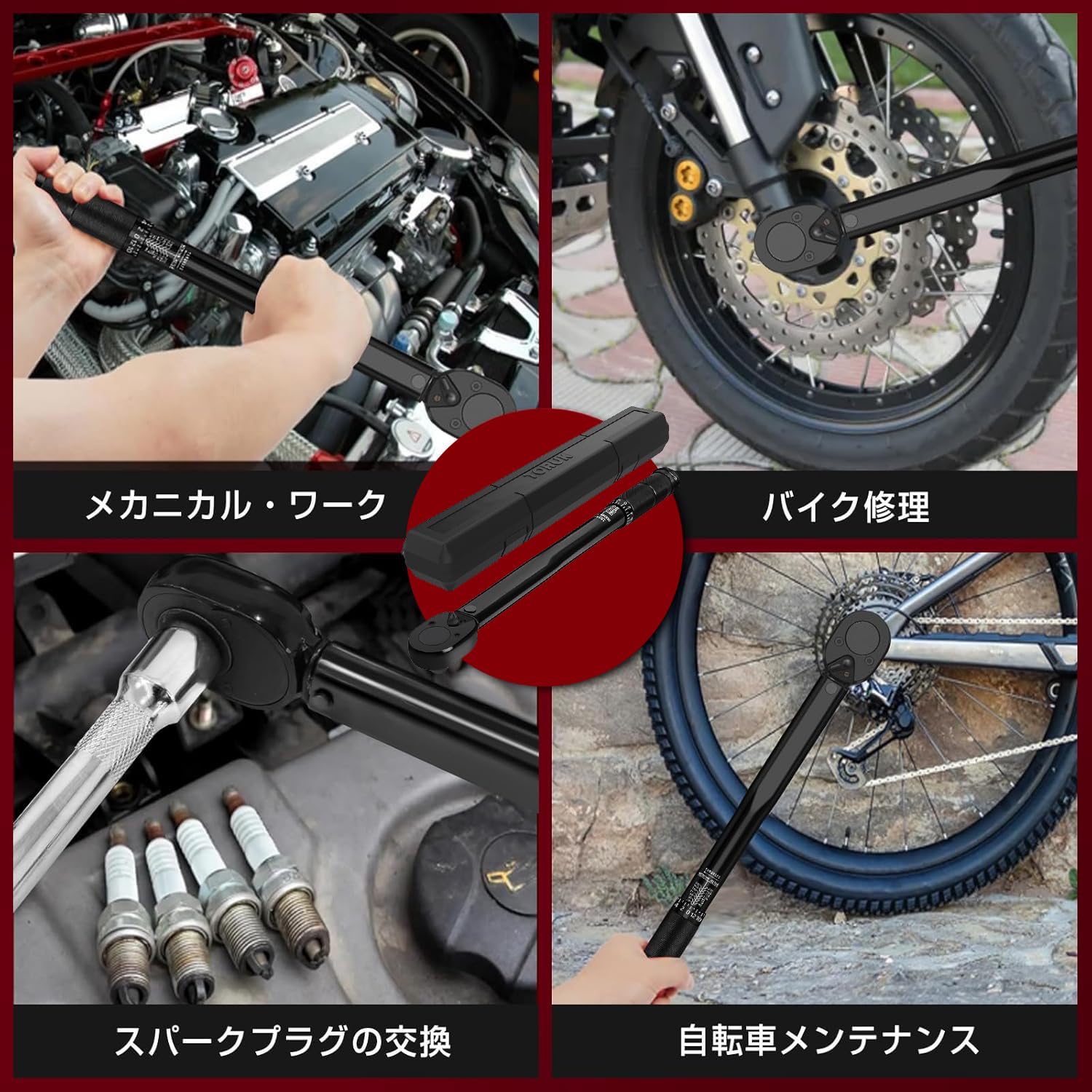 トルクレンチ プレセット型 車/バイク修理レンチ タイヤ交換 差込角9.5mm(3/8インチ) 20-140N・m 12/13/14/17mm 1/4変換ソケット 1/2変換ソケット付き ソケットレンチ ケース付き