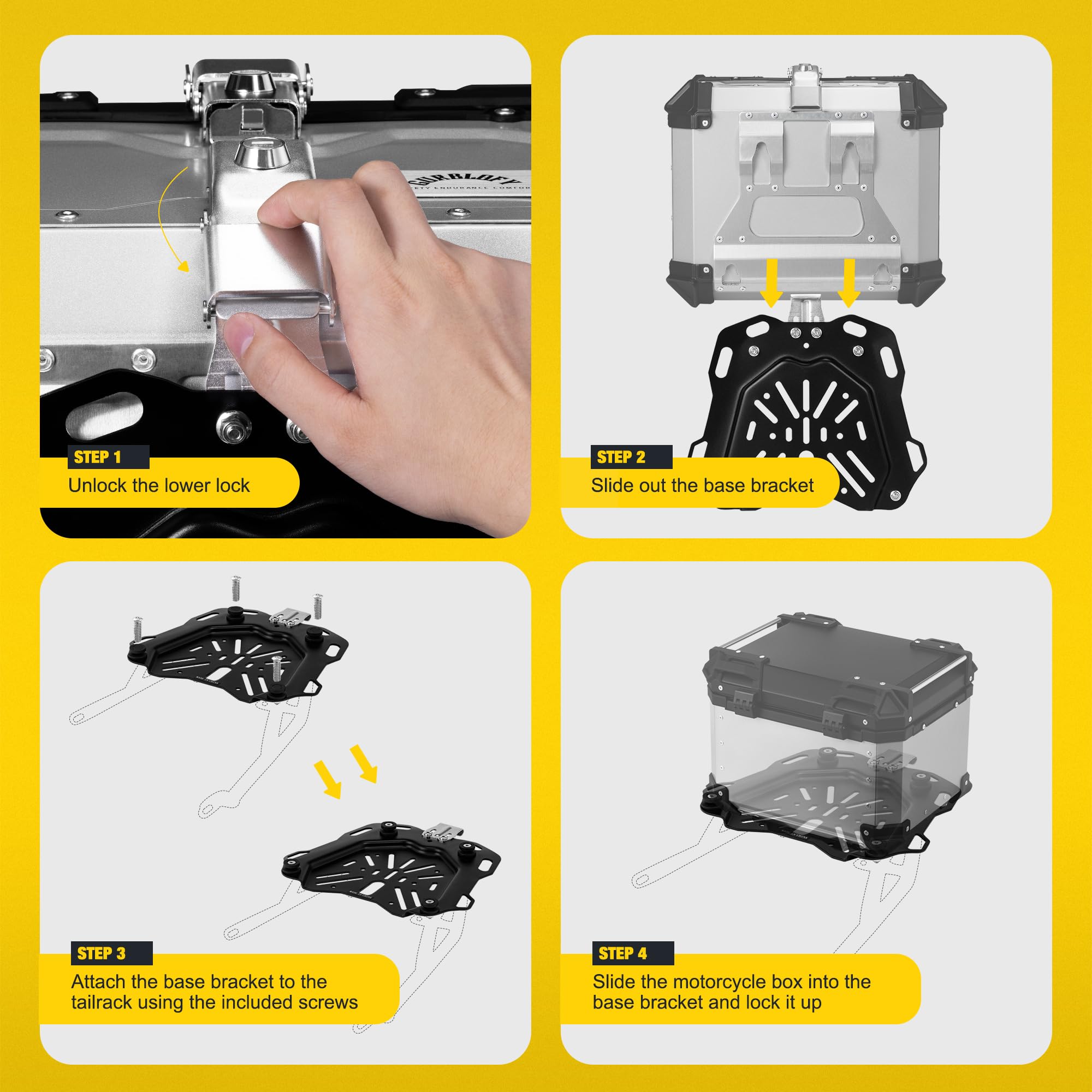 【45L】GURBLOFY バイクボックス トップケース アルミ製 防盜ロック 防水 防塵 ブラック 取り付けベース付属 バッククッション付き 簡単取り付け 大容量 GBTC-45BL-JP