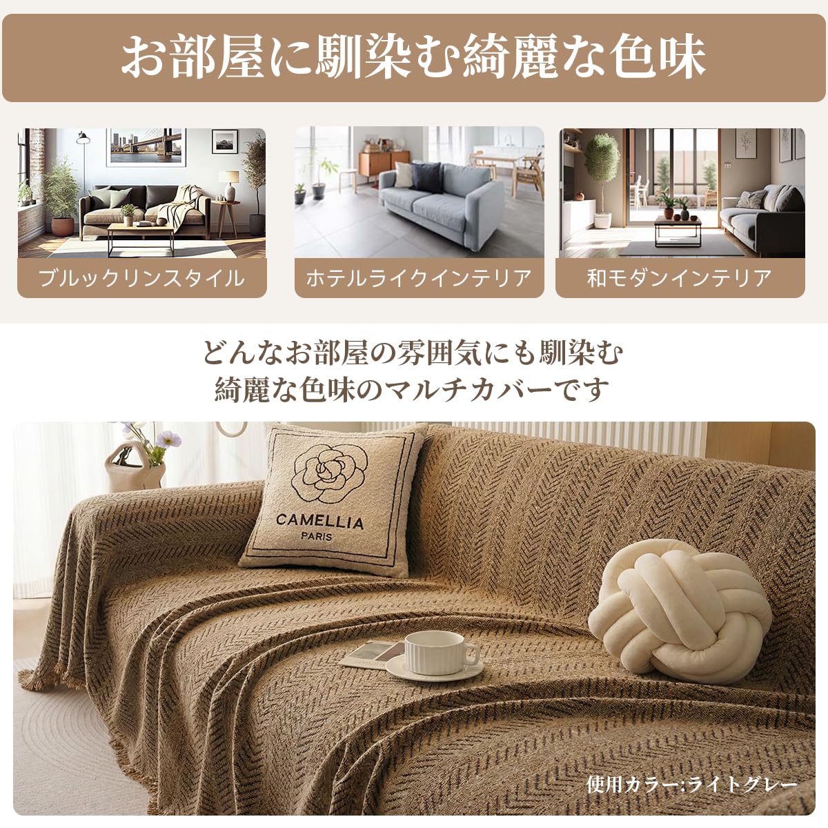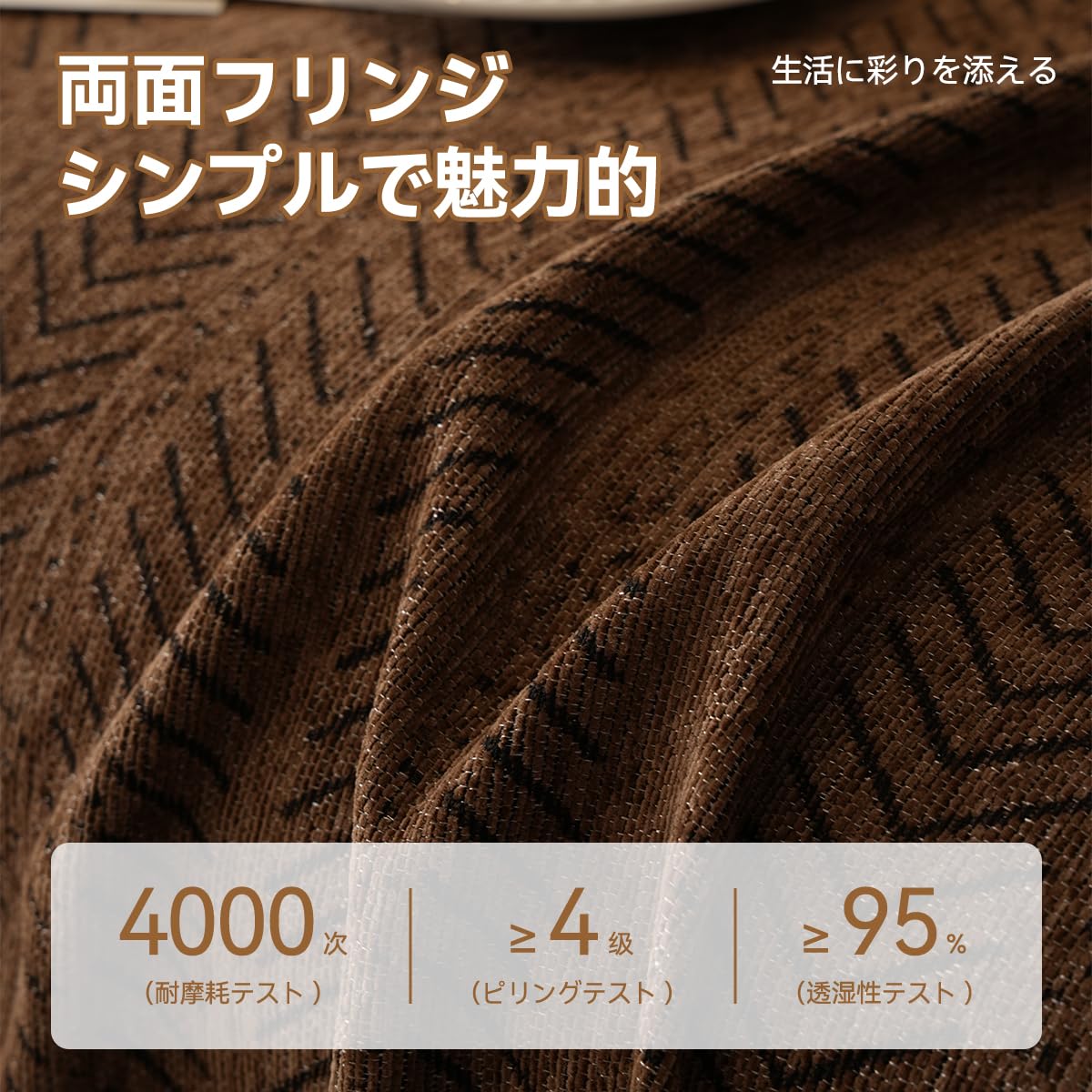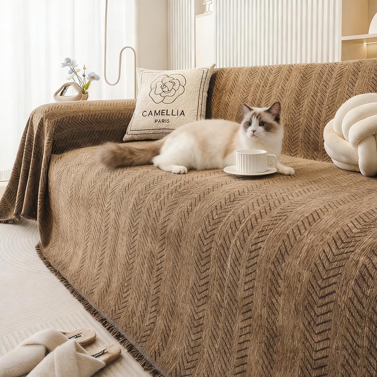 Kabisoriソファー -カバー 北欧風のおしゃれなヘリンボーン調フリンジ付き多機能カバー アーム付き・アームなし両用 リビングで使える ソファーカバー 防水防塵・耐傷 猫爪とぎ防止マルチカバー かけるだけズレないコーヒー色130*180cm 1人掛け