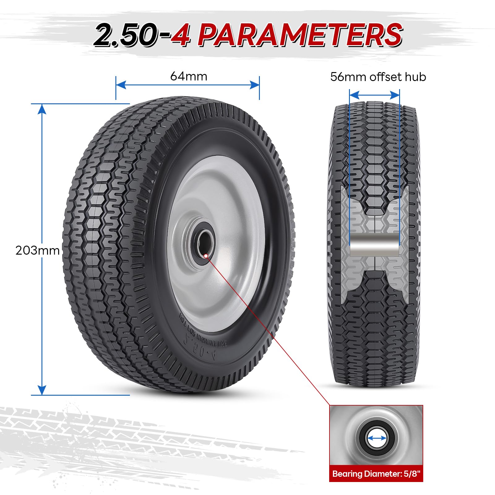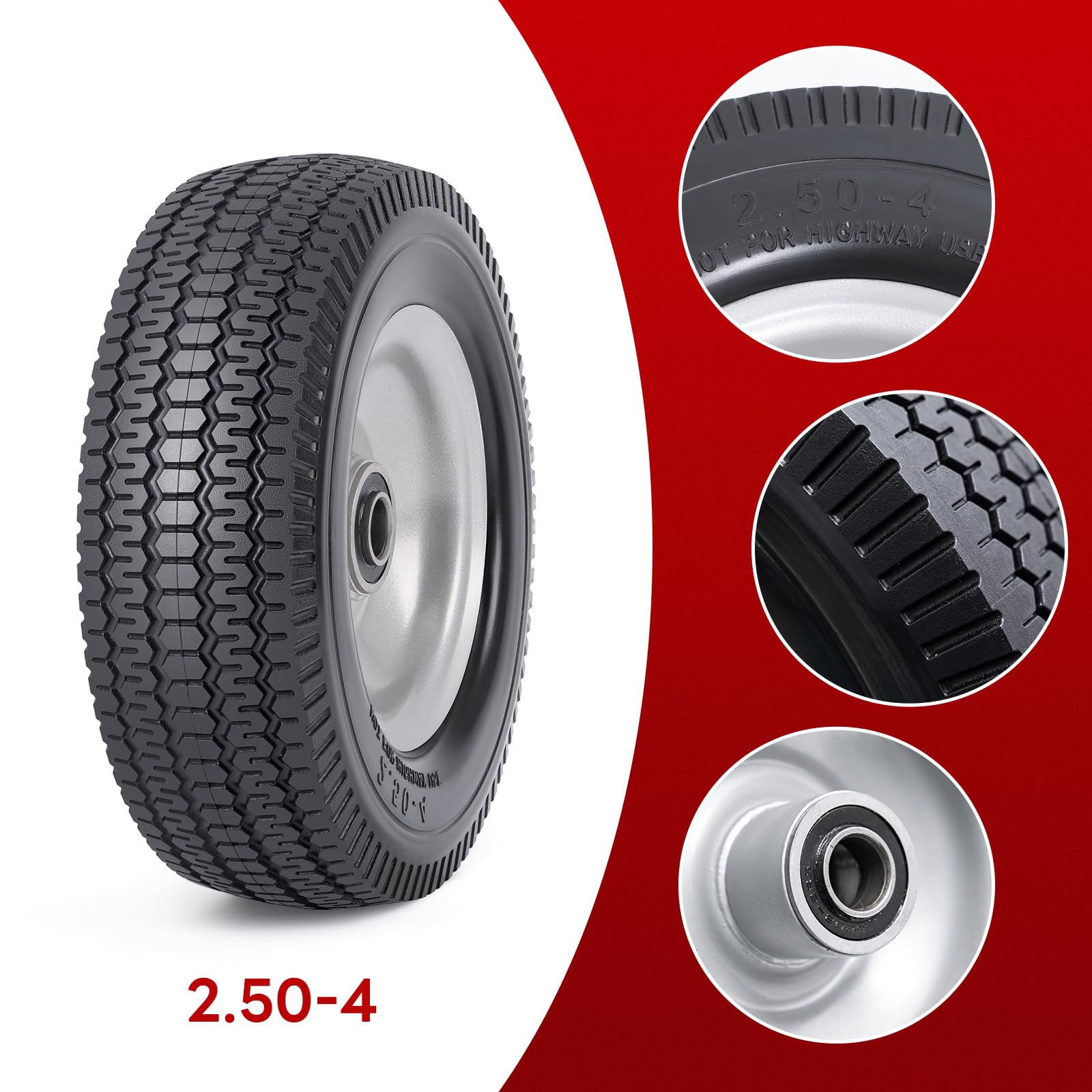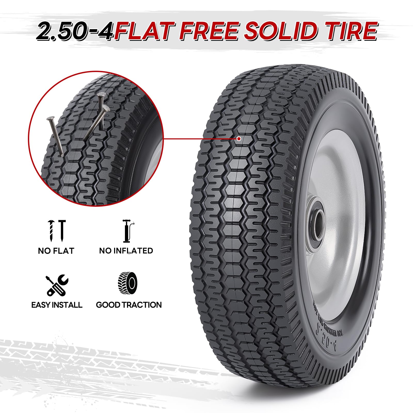 PaoWin 2本,2.50-4 タイヤ ソリッド,2.5-4 タイヤ&ホイール,適用 2.50-4 ハンドトラック/手押し車/ハンドカート/キャリーカート,P-063