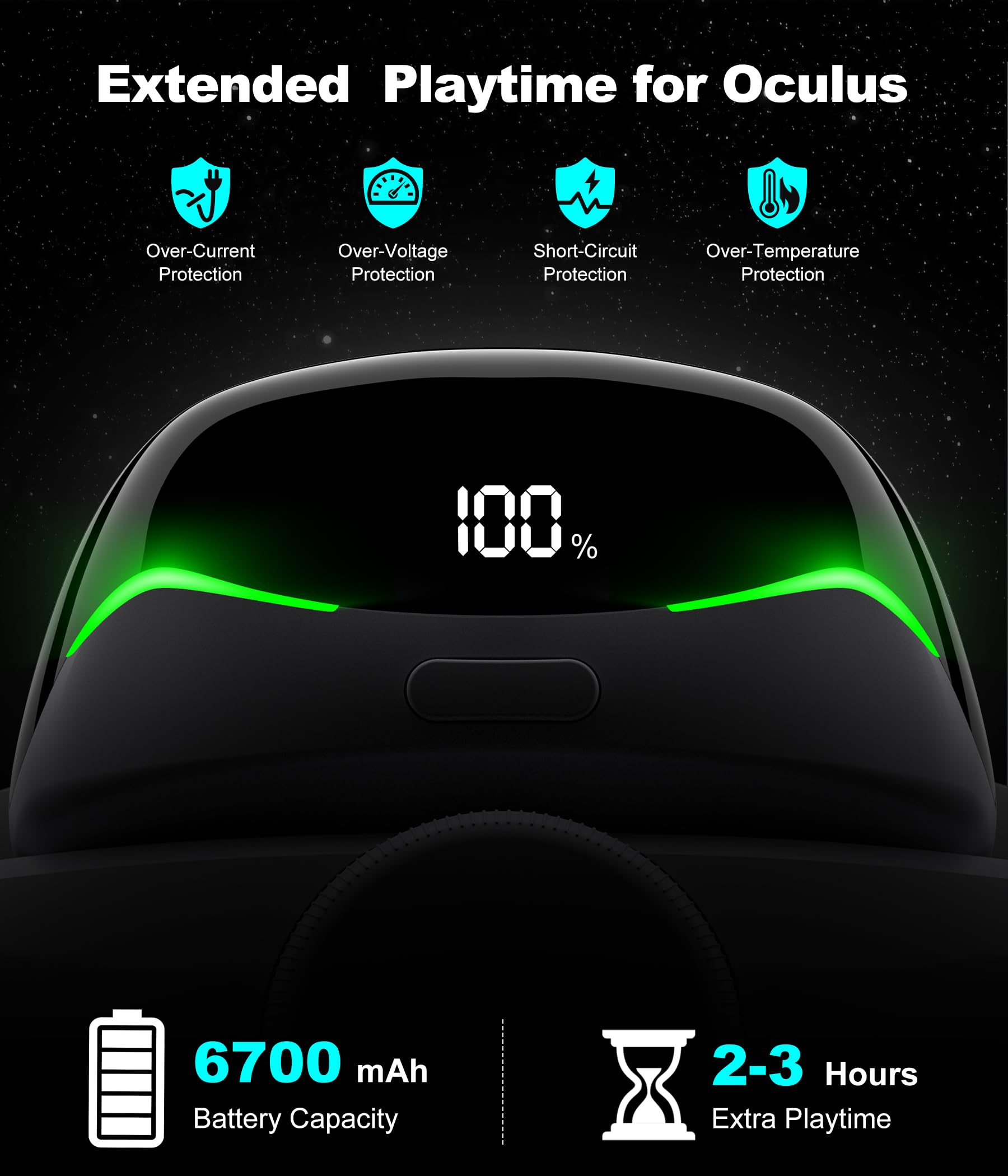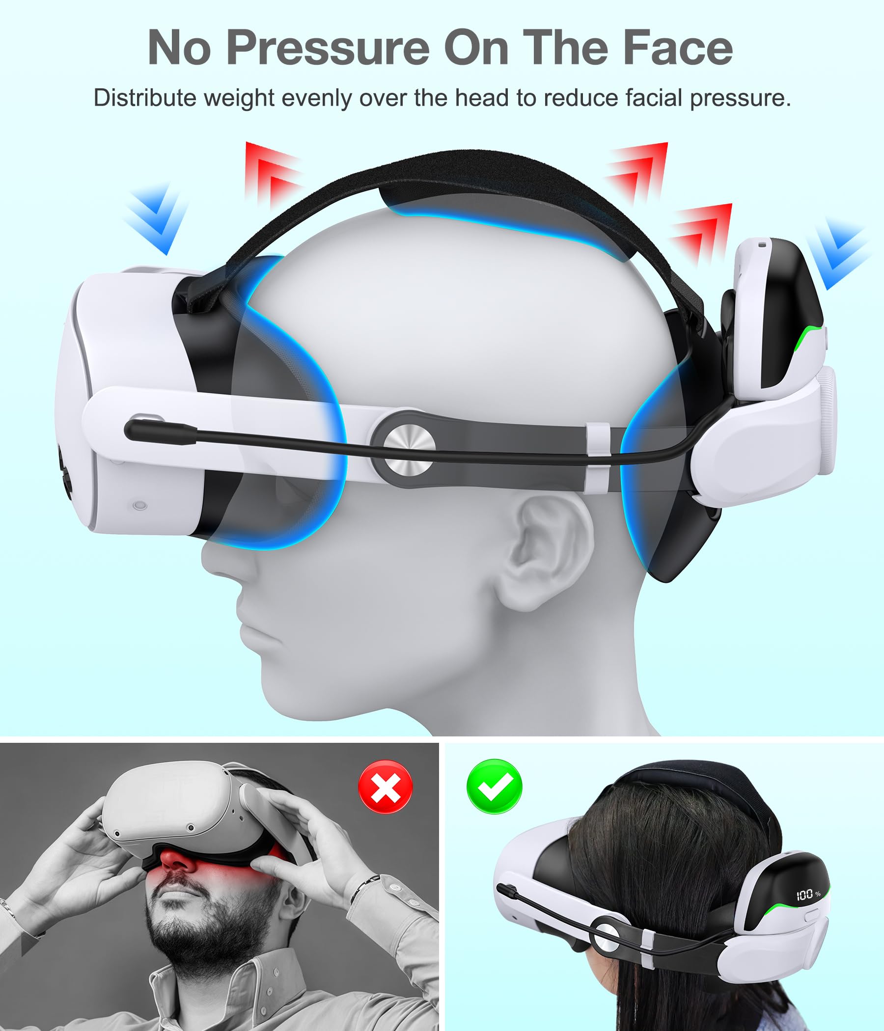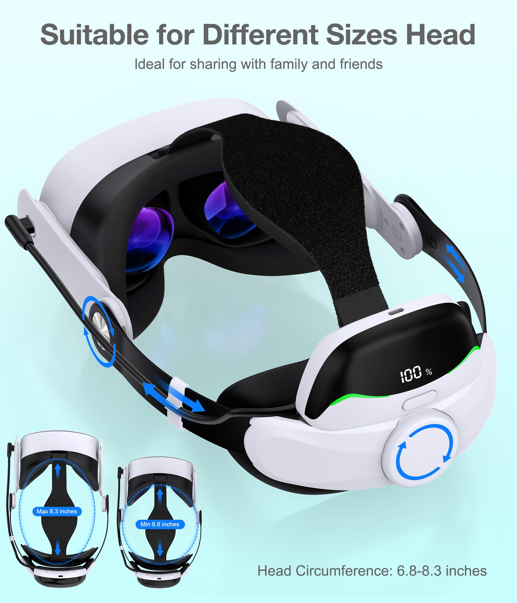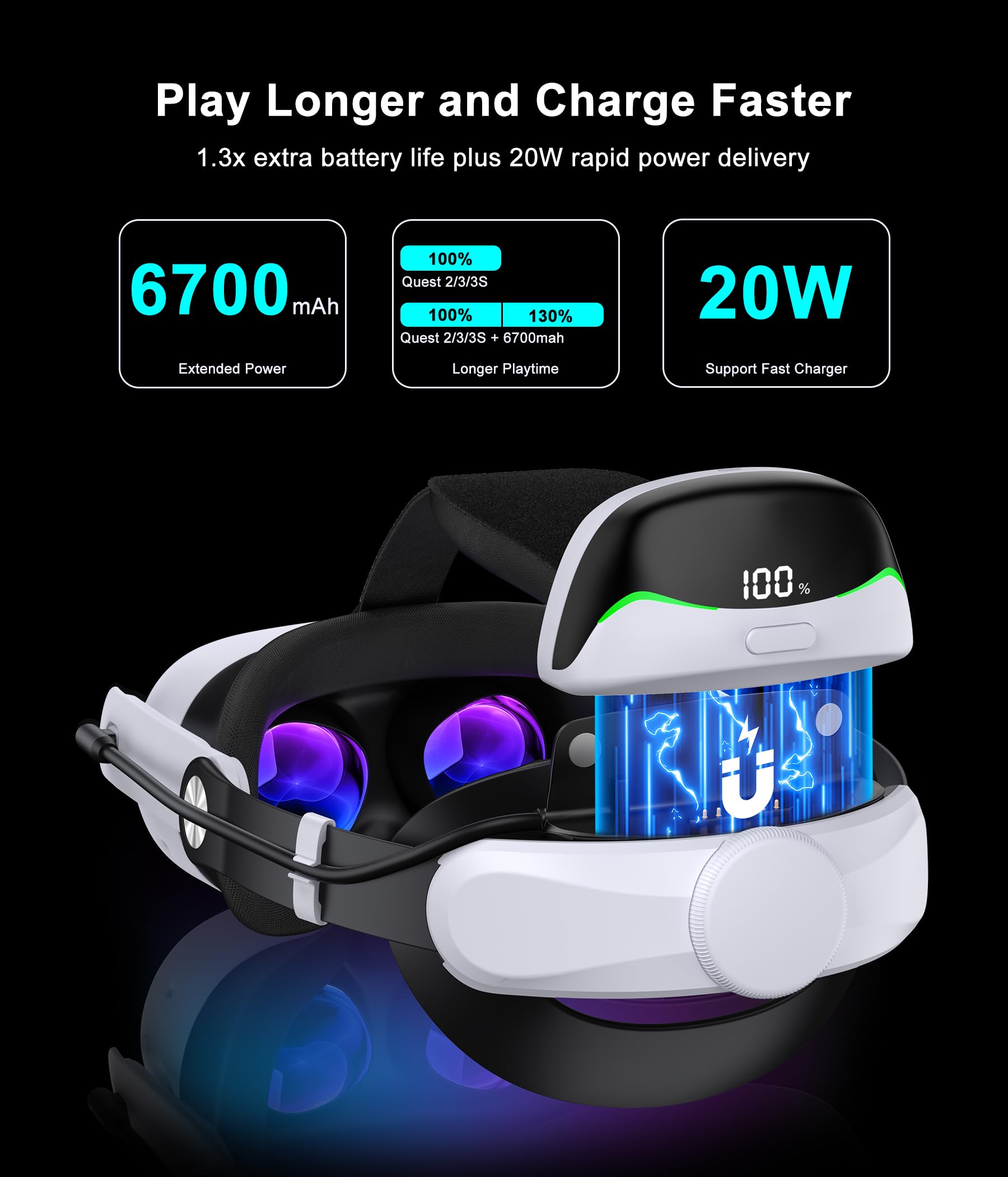 Quest 3S/Quest 3/Quest 2用ヘッドストラップ、ダブルノブ調節可能エリートストラップ交換用、VRヘッドセットアクセサリー 高速充電6700mAhのマグネット式バッテリー ストラップ強化サポート&快適&圧力軽減のプレイ時間を延長