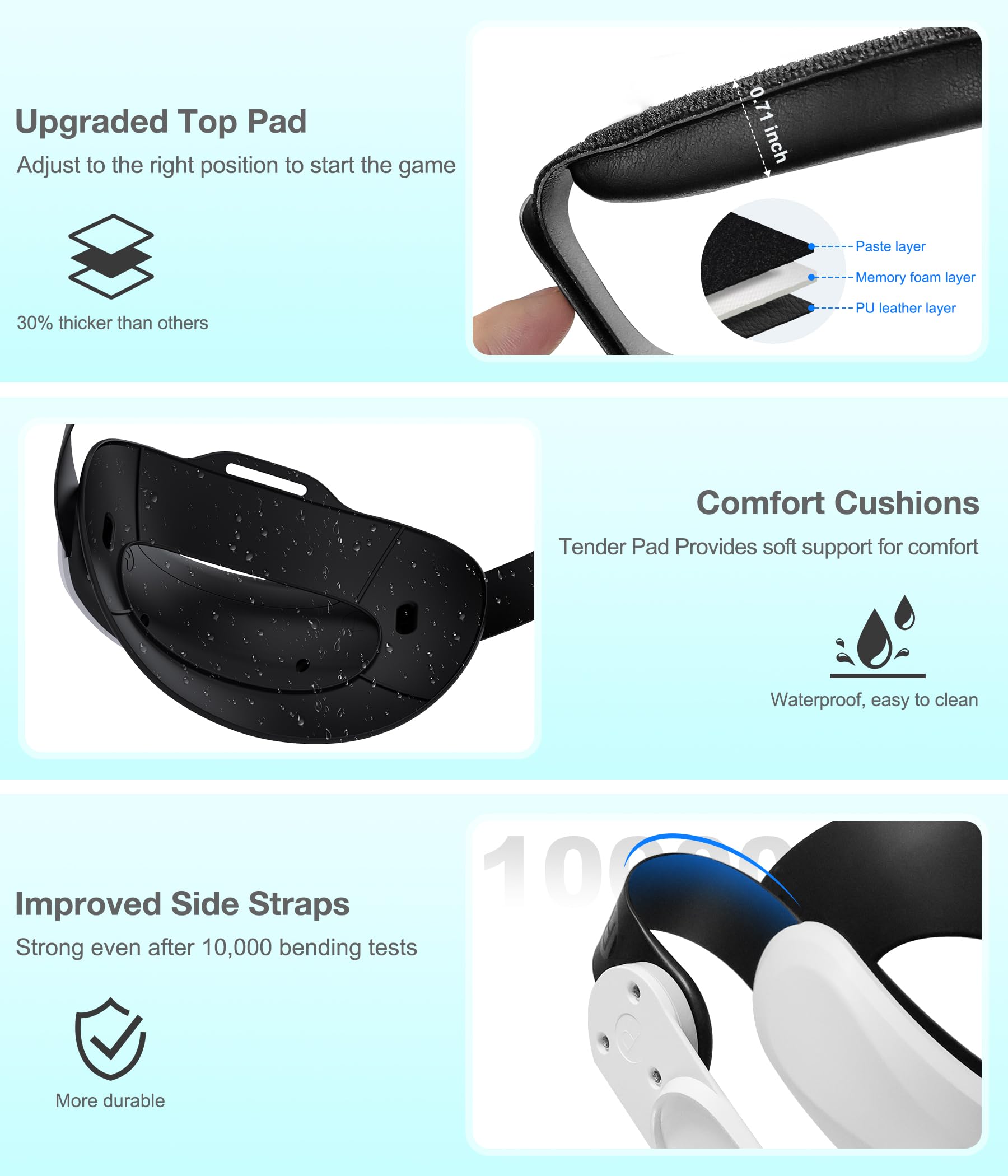 KIWI design Quest 2に対応 ヘッドストラップ ソフトクッション 簡単装着 着脱数秒