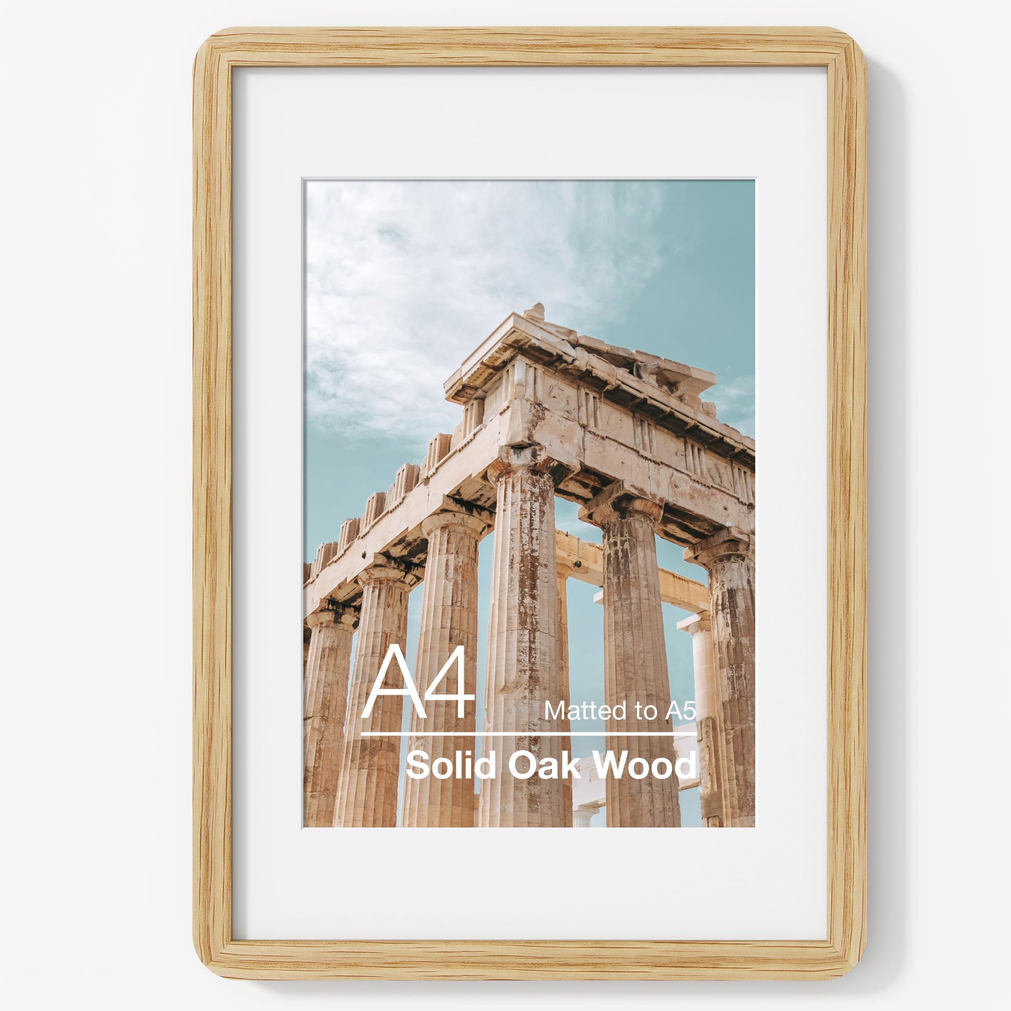 Axeman 5x7インチ写真フレーム | オーク無垢材写真フレーム | 5x7インチのフレーム マット付き 4x6用 | 5x7インチのフォトフレーム | 5x7インチの木製写真フレーム | 5x7インチの写真フレーム | 吊り下げ金具付き | ナチュラル