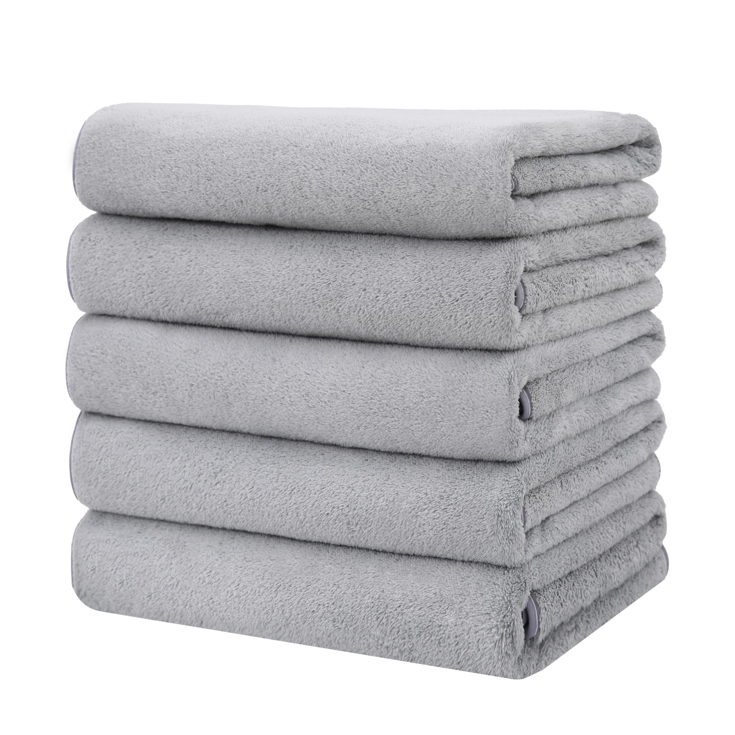 Etech バスタオル マイクロファイバー 60*120cm 5枚セット 軽い ふわふわ 柔らかい肌触り 吸水性 乾きやすい 耐久性 抗菌防臭 (グレー_5枚)