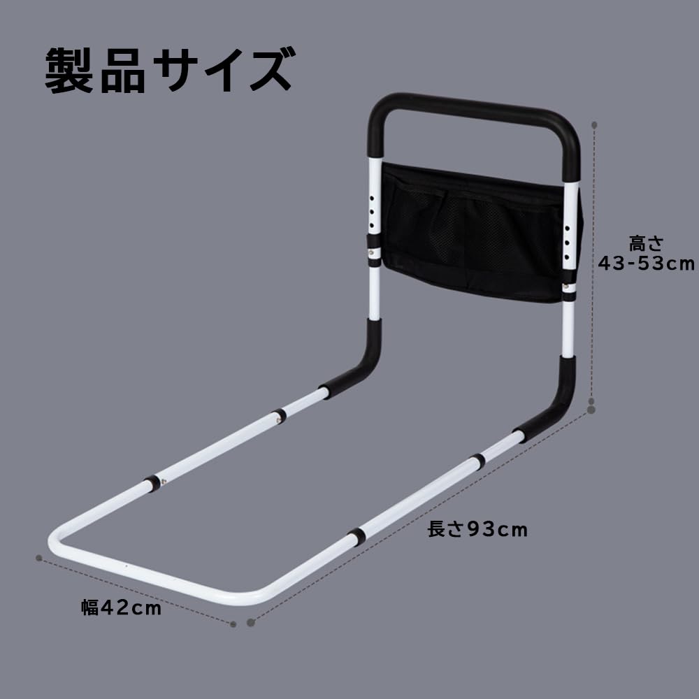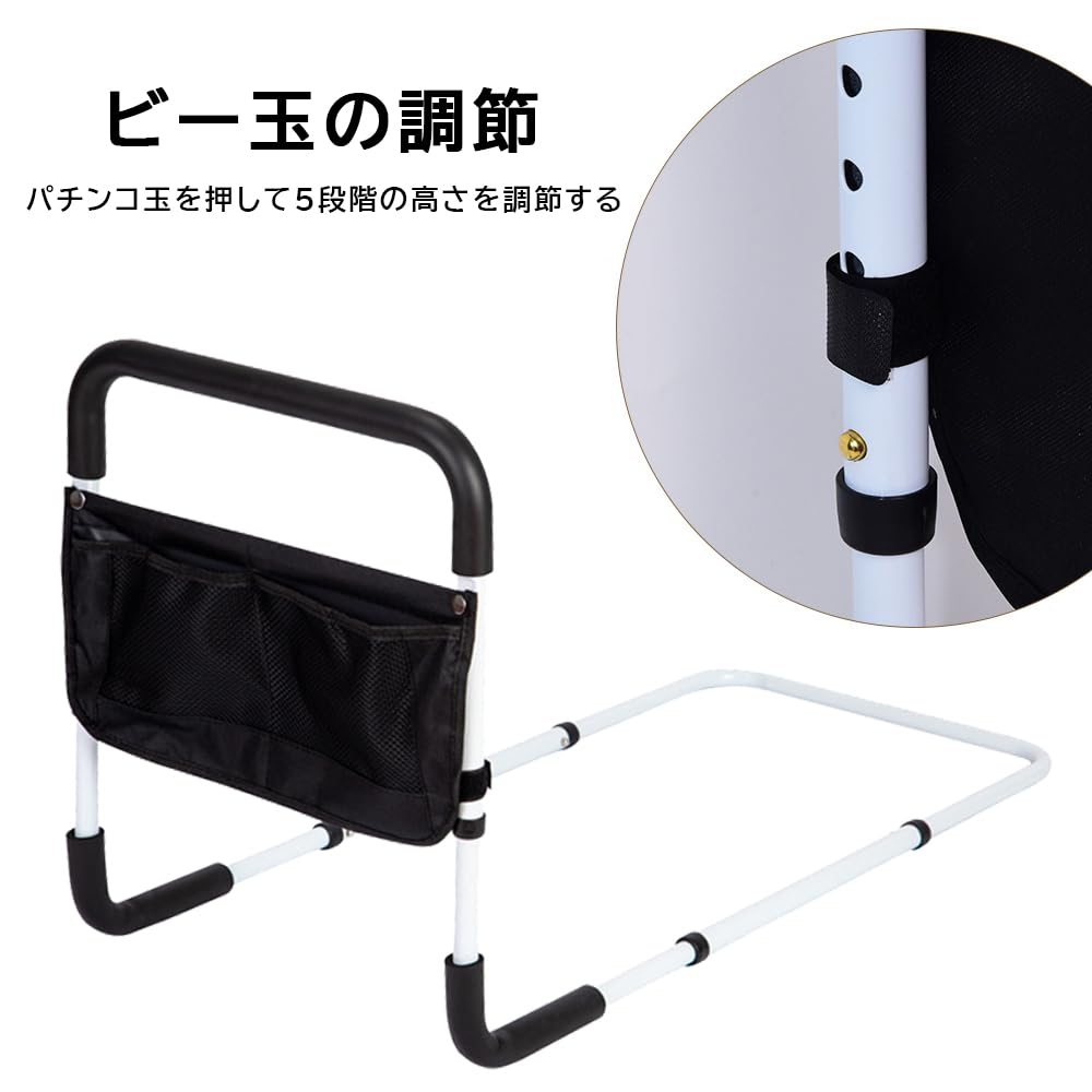 BTtime ベッドガード 起き上がり手すり ベッド柵 介護柵 手すりサイドレール 立ち上がり補助器具 起き上がり補助 ガード ベッド用手すり 収納ポケット付き 転倒防止 安定性 丈夫 簡単な組み立て 大人 高齢者向け