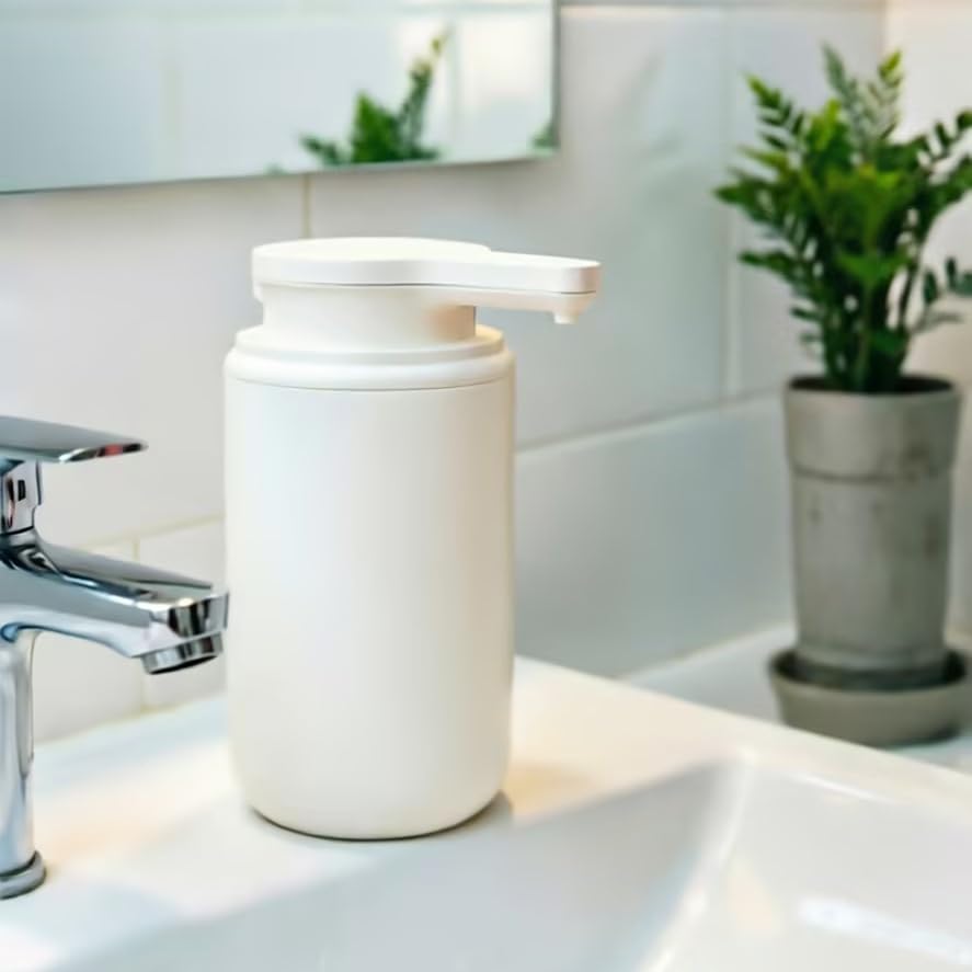 KAWEINA【NEW肌感新工法】ハンドソープボトル ソープディスペンサー 泡 手動 押しタイプ ポンプ式 手洗い セラミック 磁器 陶器 広口 ディスペンサー 詰め替え ハンドソープ用 食器用洗剤 北欧スタイル 台所 キッチン 洗面所 トイレ バスルーム お風呂場 (グレー, 泡タイプ)