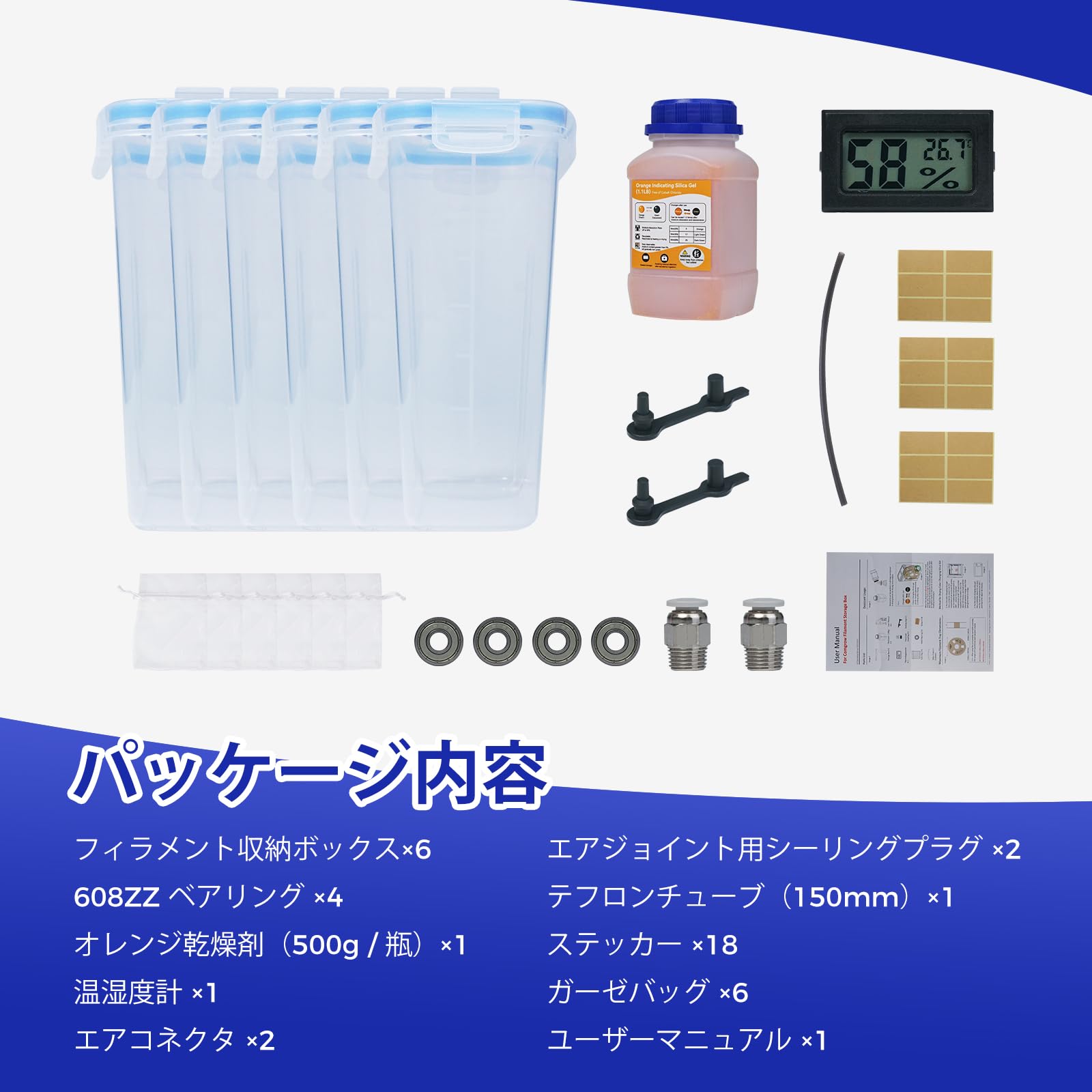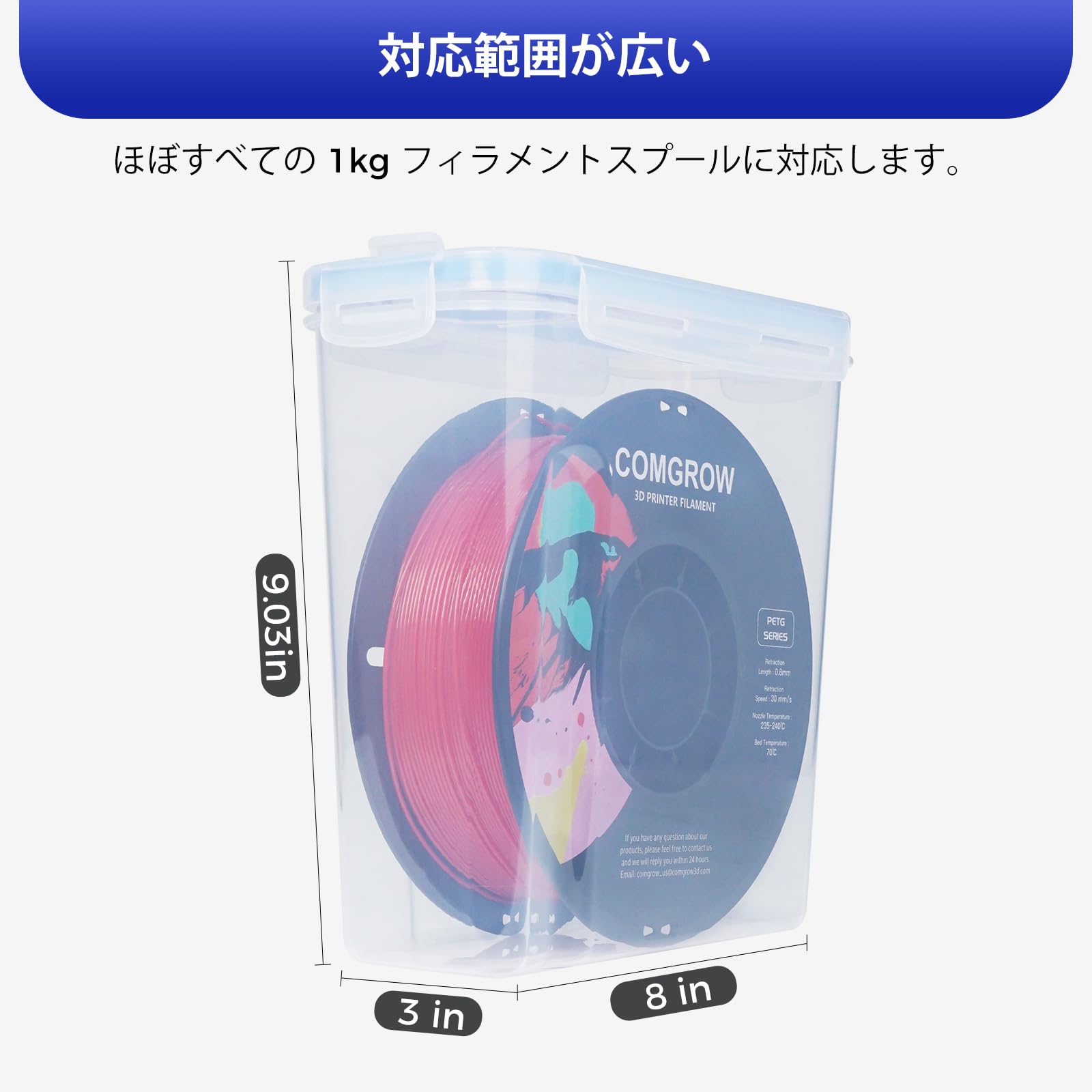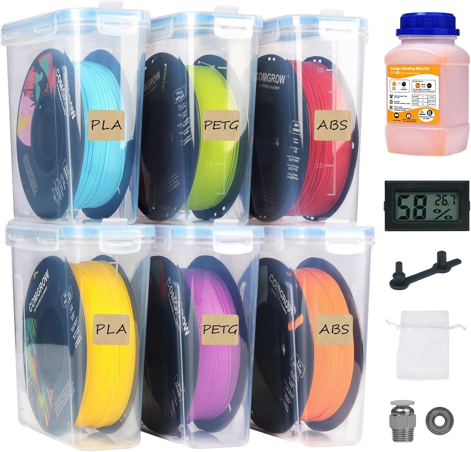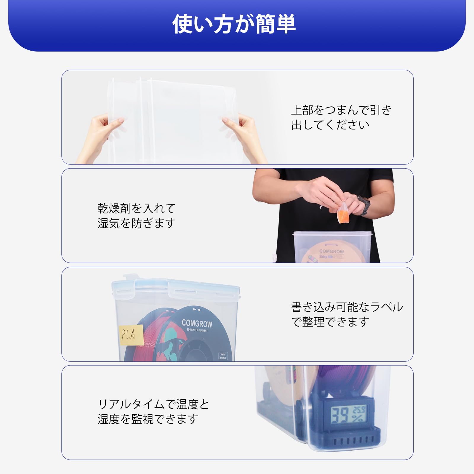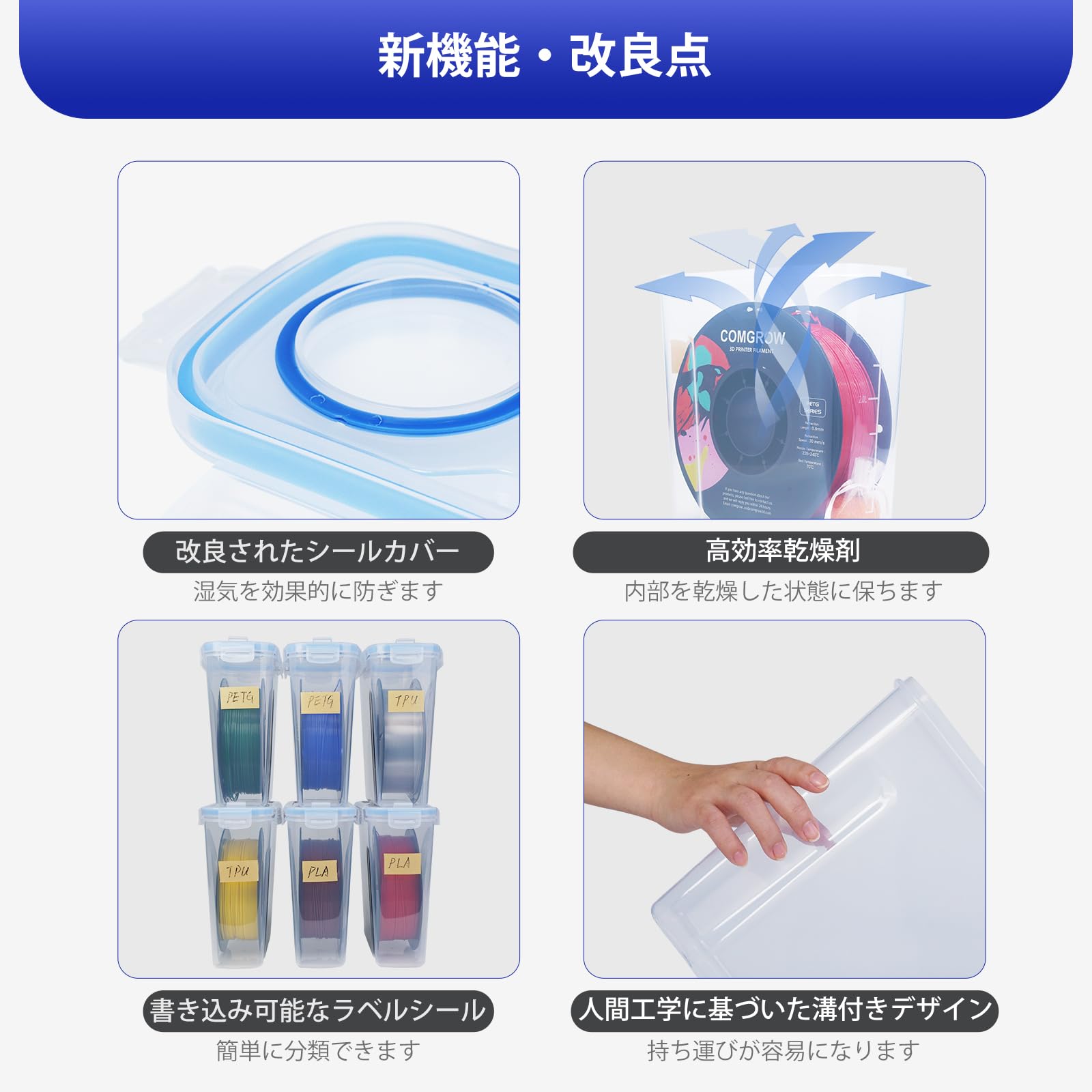 Comgrow フィラメント収納ボックス 6個セット – 3Dプリンターフィラメント用密閉保管ケース – 乾燥剤・温湿度計・ベアリング付き ラベル付き 持ち運び便利 3D 印刷用フィラメント保管ケース 密封・防湿・防水・防塵仕様 4.0L(約22.9×20.3×7.6cm)