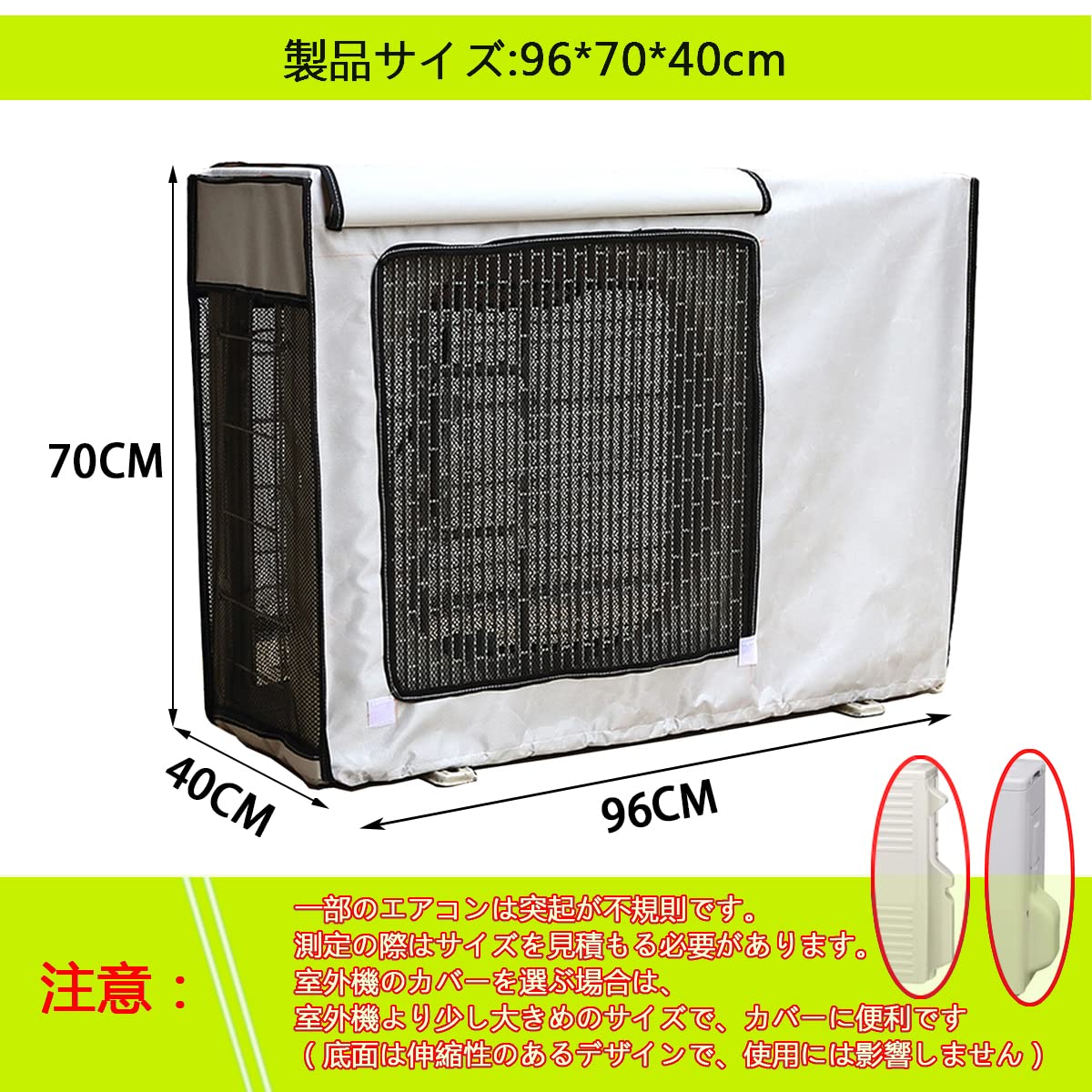 Yixintech エアコン室外機カバー 雨 雪対策 凍結防止 遮熱 劣化防止 汚れ防止 日焼け止め 防水 防塵 日よけ 取り外し不要 下部固定 節電 省エネ 簡単装着 家庭用 業務用(オーロラシルバー) (NEW 96*70*40cm)