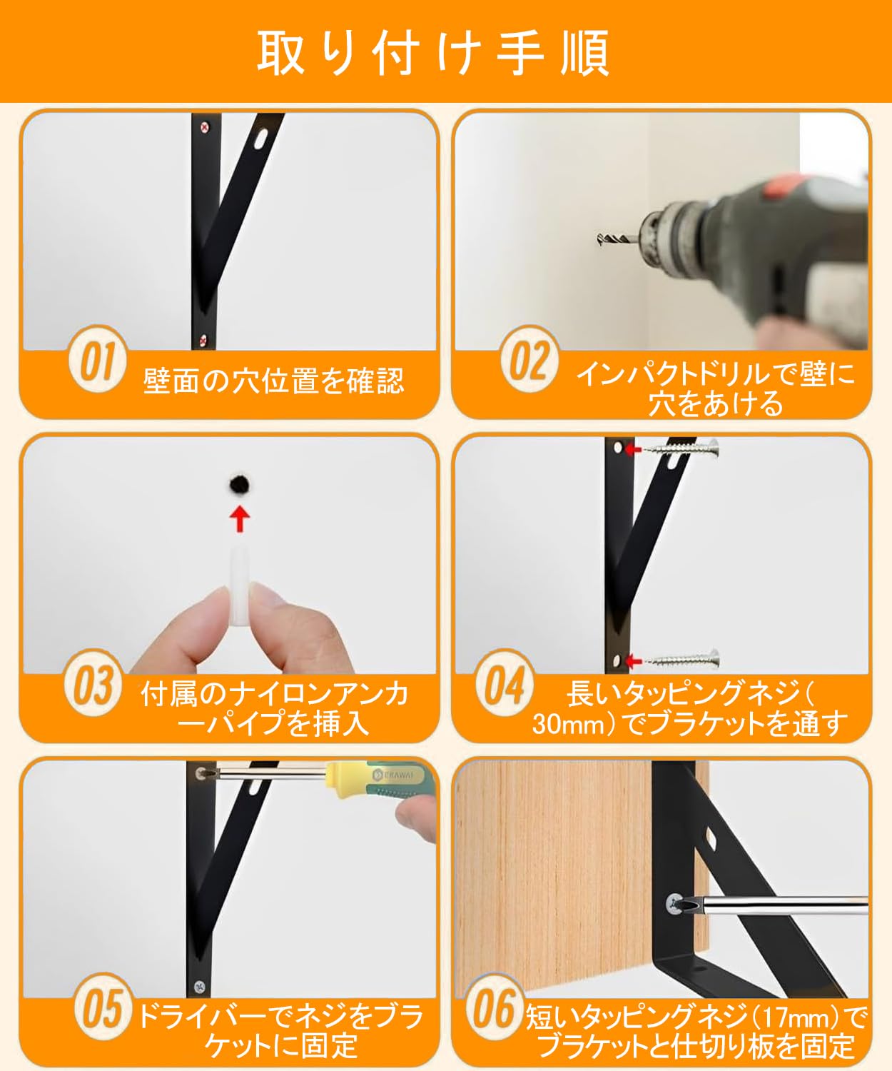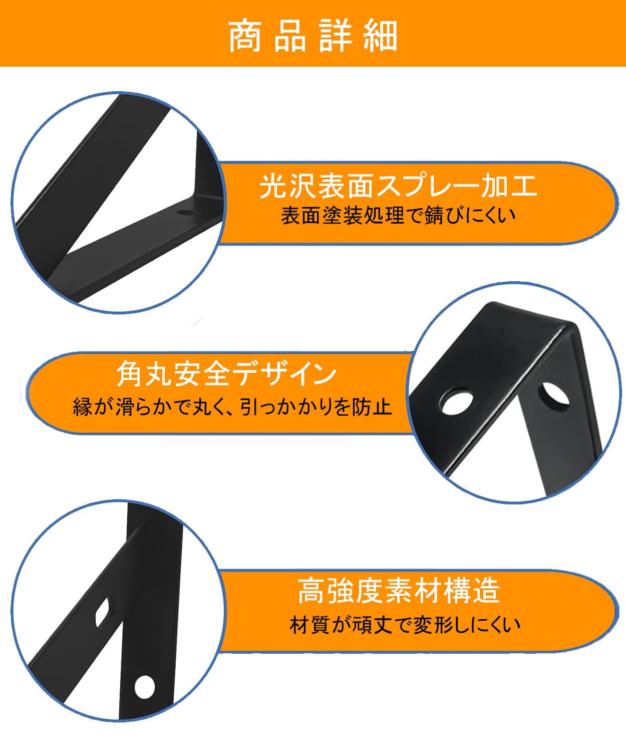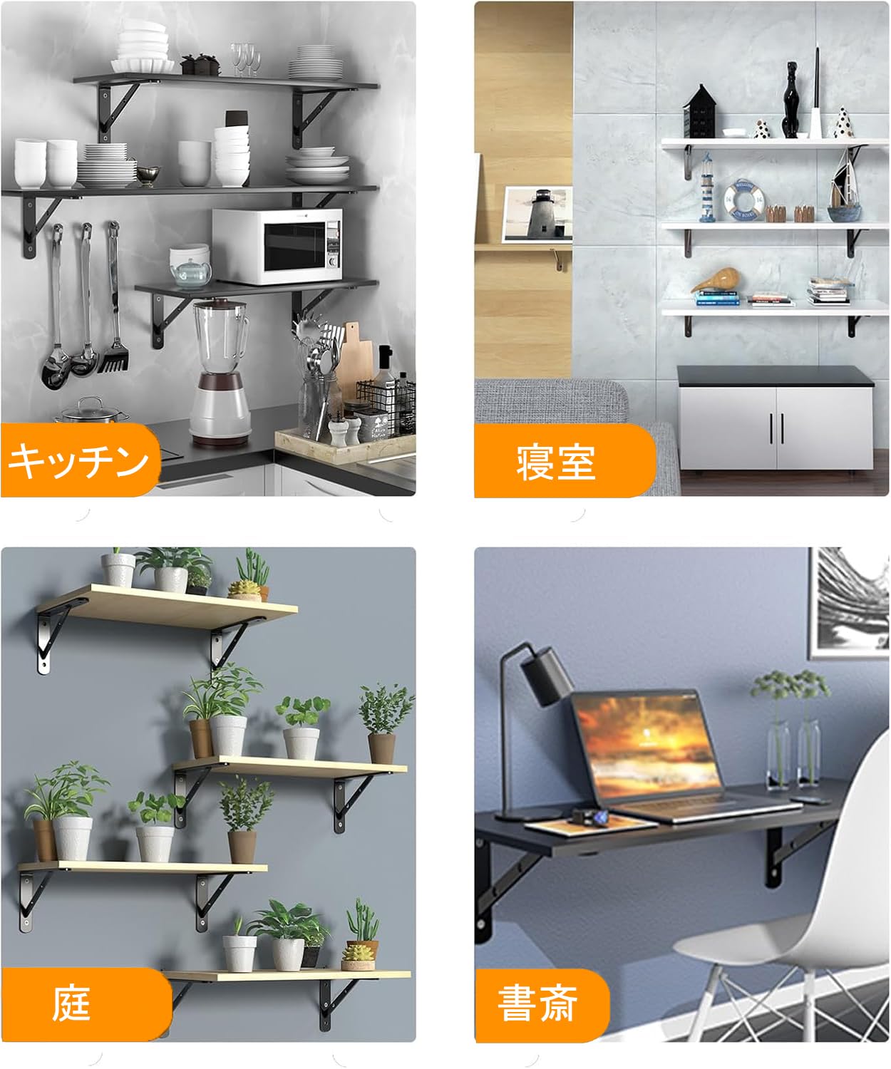 MLOQI 棚受け金具 4個セット 軽量ブラケット 頑丈棚受け 金具 ビス付 最大荷重50KG 隠し棚受け 棚の補強 l字金具 ブラック(4本 20cm)