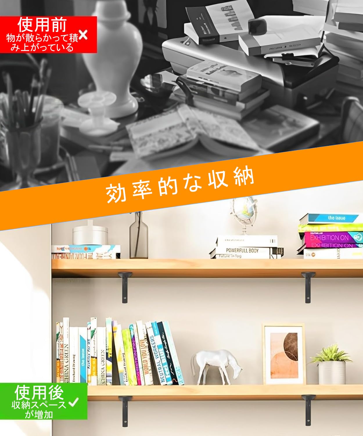 MLOQI 棚受け金具 4個セット 軽量ブラケット 頑丈棚受け 金具 ビス付 最大荷重50KG 隠し棚受け 棚の補強 l字金具 ブラック(4本 40cm)