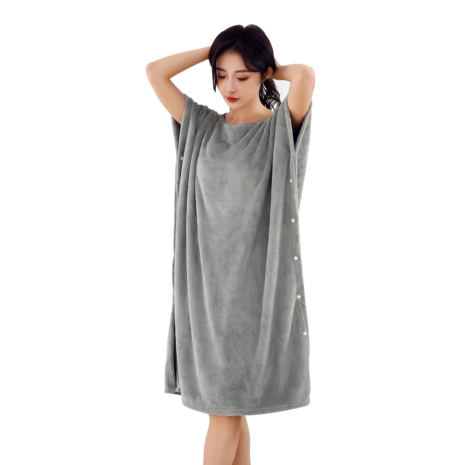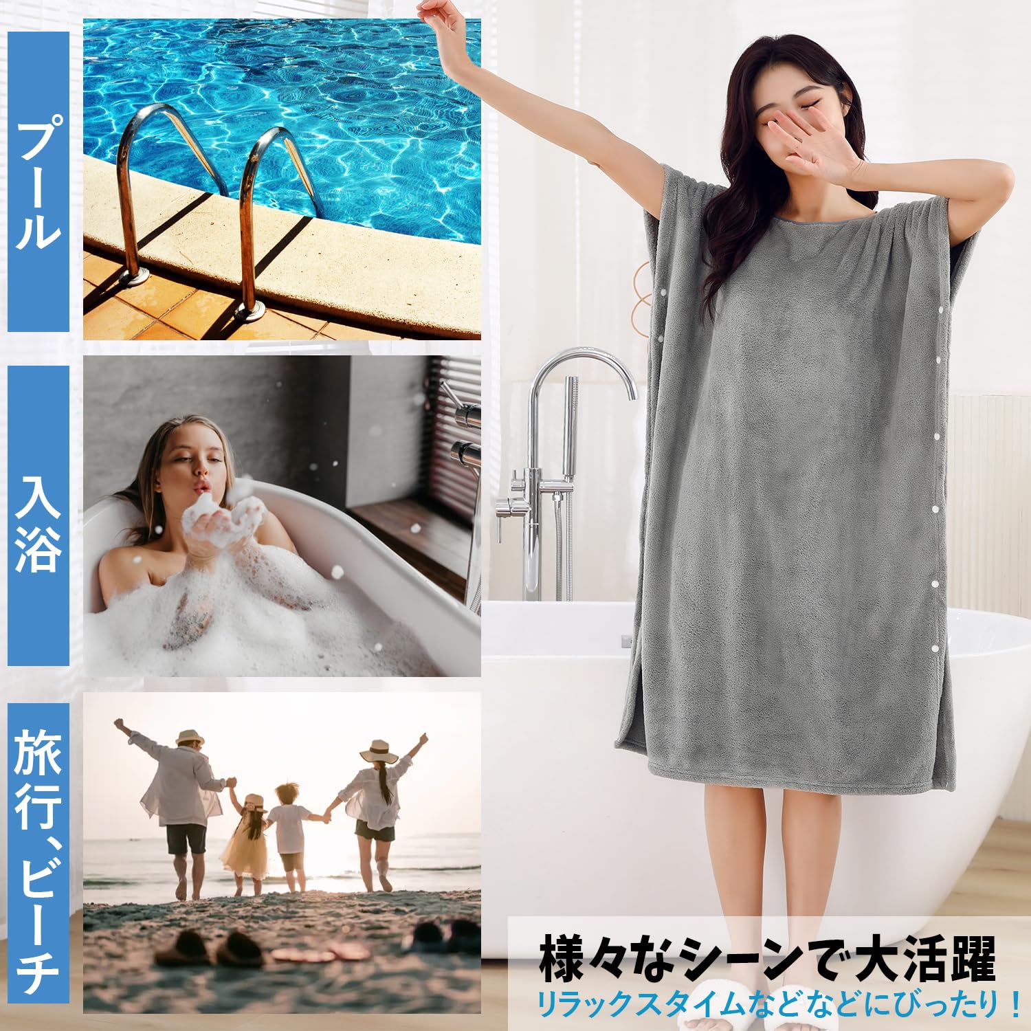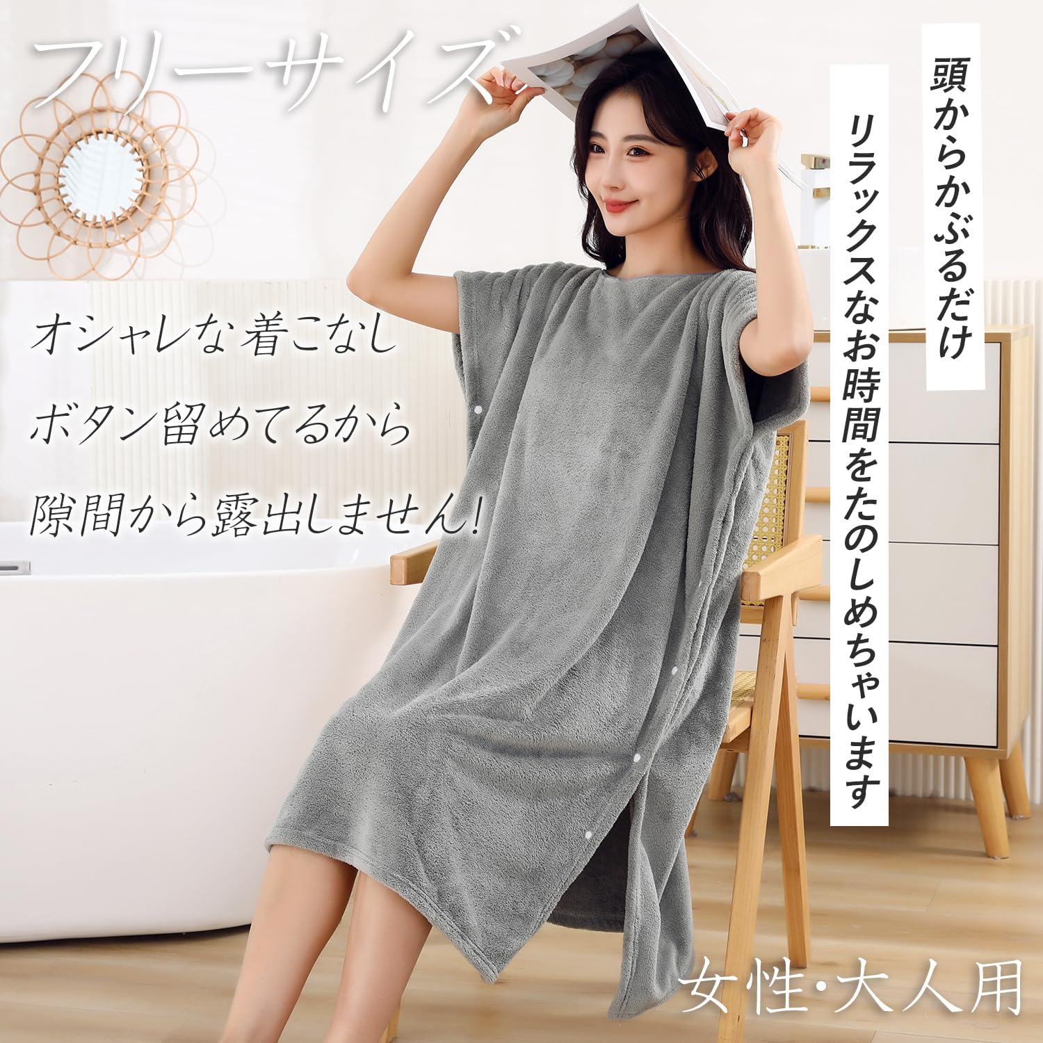 [GREATCALL] 着るタオル レディース ラップタオル 大人用 マイクロファイバー バスタオル 吸水速乾 お風呂上り 湯冷め防止 子育てママ バスローブ (グレー)