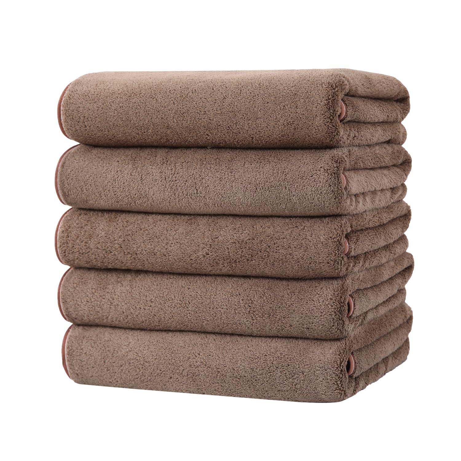 バスタオル マイクロファイバー 大判 5枚セット 吸水 60X120cm ふわふわ 柔らかい肌触り 速乾 耐久性 抗菌防臭 毛羽落ちしない ホテル仕様 お風呂上がり 家庭用 業務用 (ブラウン)