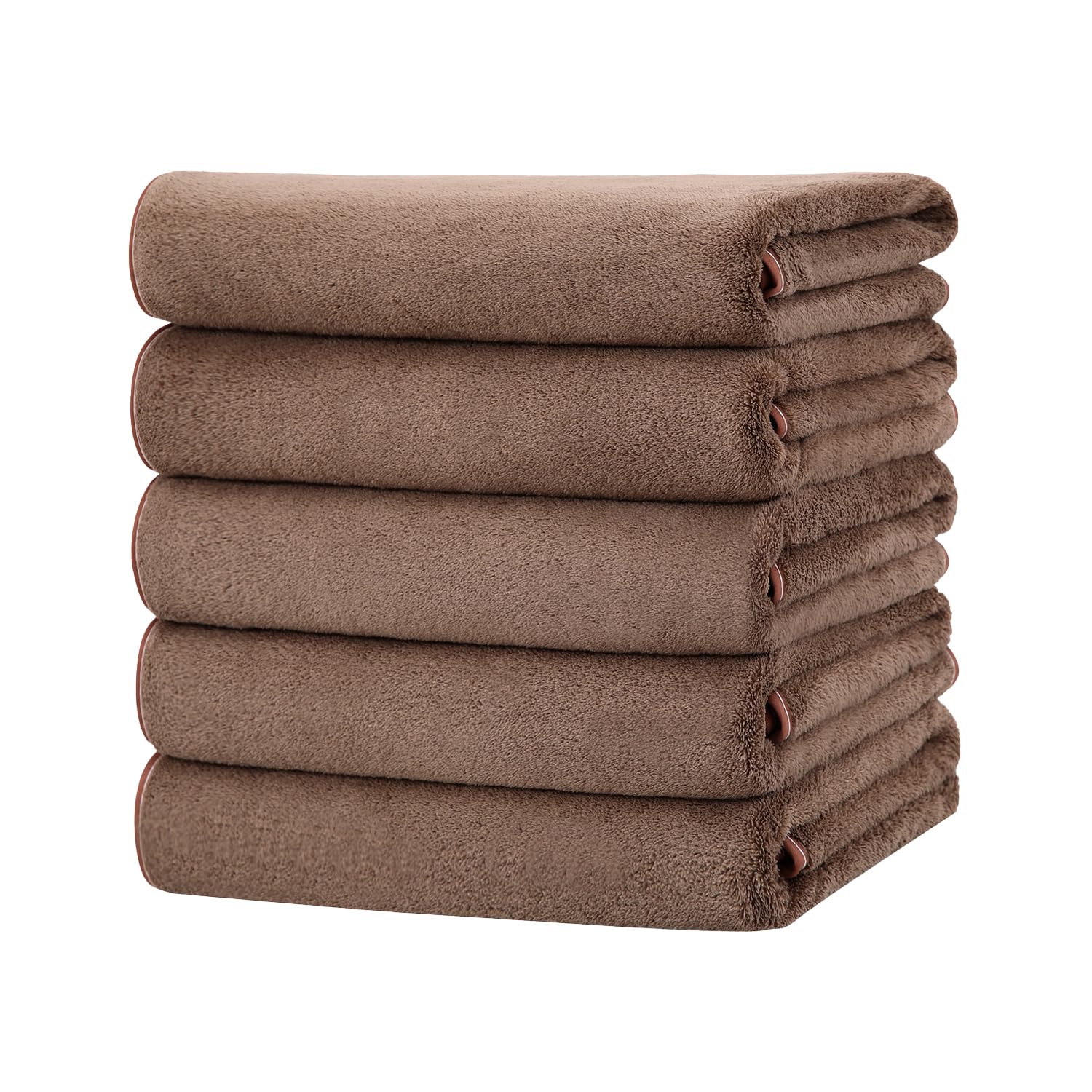 バスタオル マイクロファイバー 60X120cm 5枚セット ふわふわ 柔らかい肌触り ホテル仕様 大判 瞬間吸水 速乾 耐久性 お風呂上がり 家庭用 業務用 タオル (ブラウン)