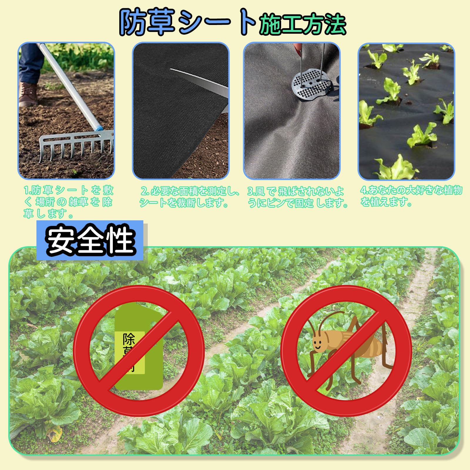 防草シート 厚手 高耐久 2×30M シート防草 不織布 除草シート補修テープ 雑草防止シート固定ピン60本と黒丸60枚付き 家庭菜園 農業 工事用 園芸用 人工芝下 ブラック