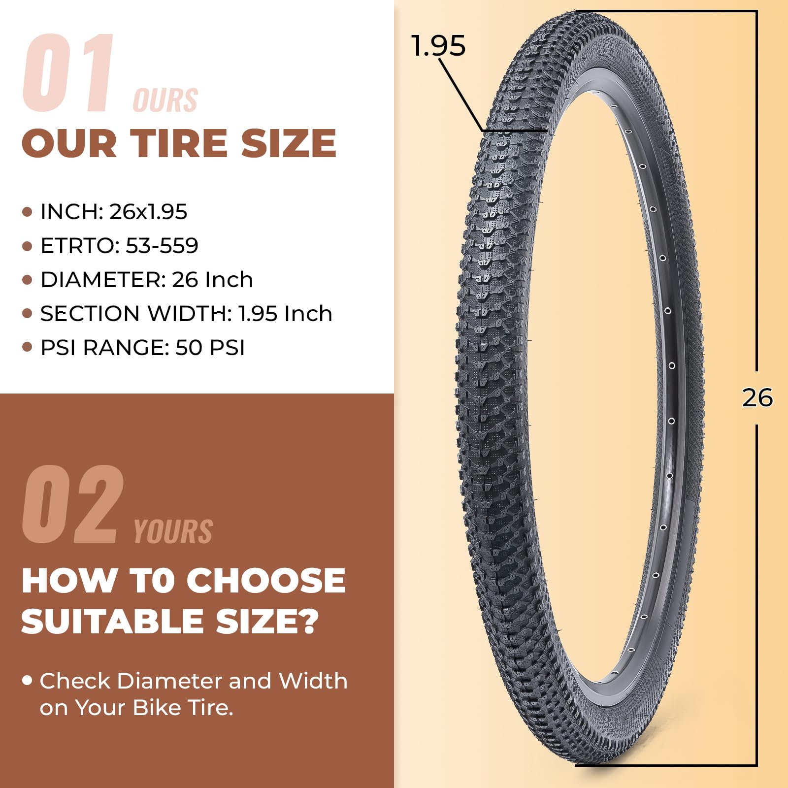 2本セット,26 1.95 タイヤ,26x1.95 50-559自転車タイヤ+ 自転車チューブ 米式バルブ32mm+タイヤレバ,適用 26インチ 1.95 マウンテンバイク、クロスバイク,Y-1440
