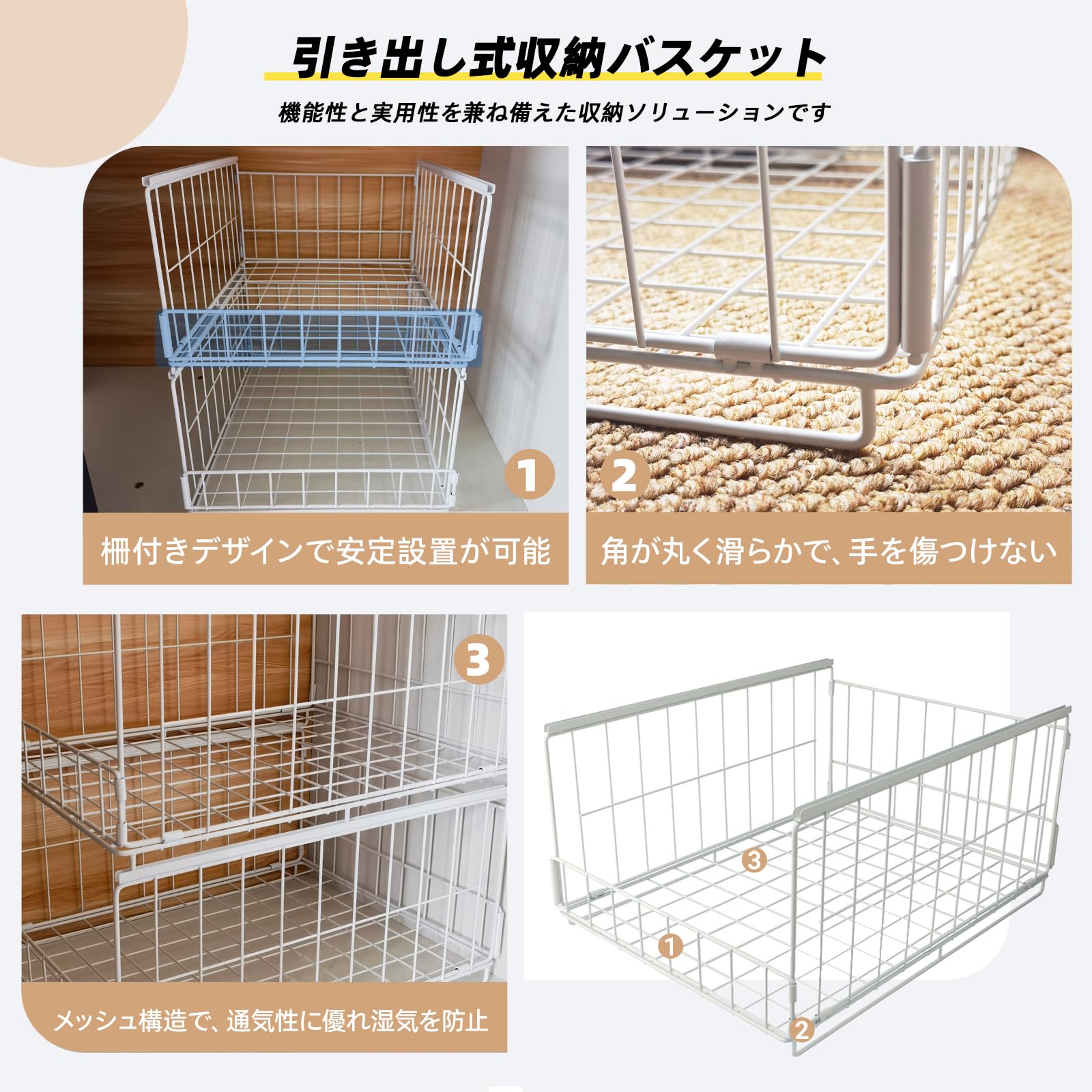 Y-Step ワイヤーバスケット 収納ボックス 小物入れケース 滑り止め足付き 深型収納カゴ 収納バスケット3セット 37×18×15cm 鉄(粉体塗装)/防錆コート: キッチン小物・冷蔵庫整理 雑貨整理 卓上収納 軽量・多用途 重ね収納可能 取っ手付き