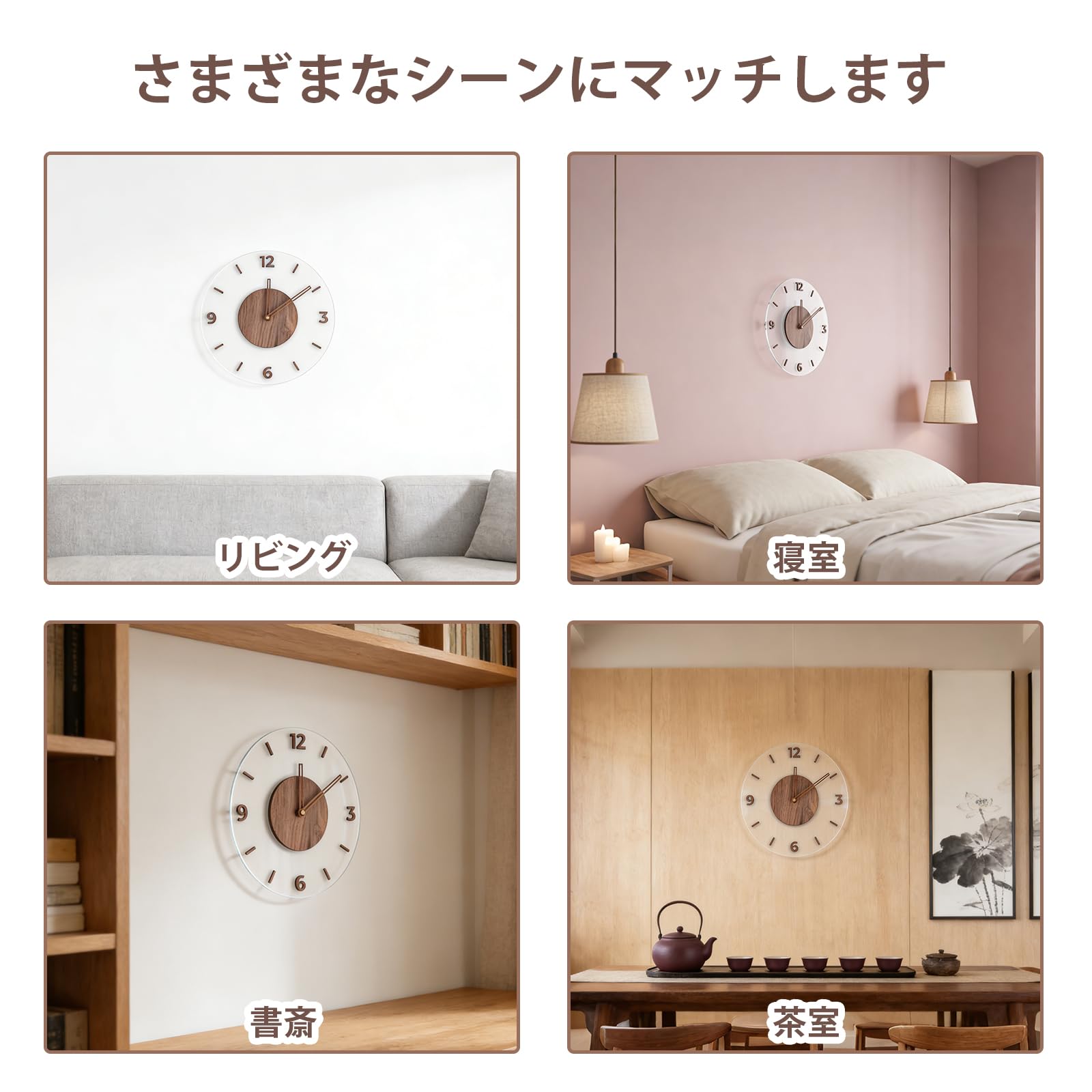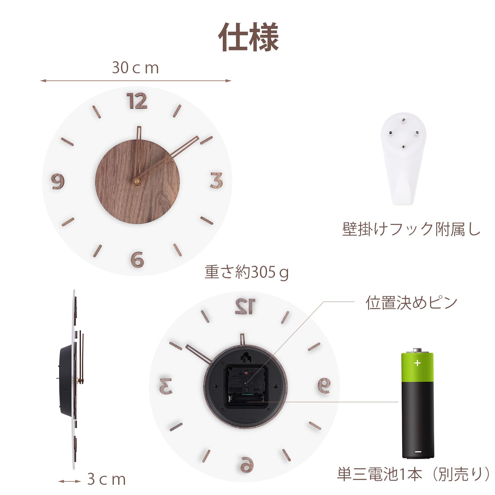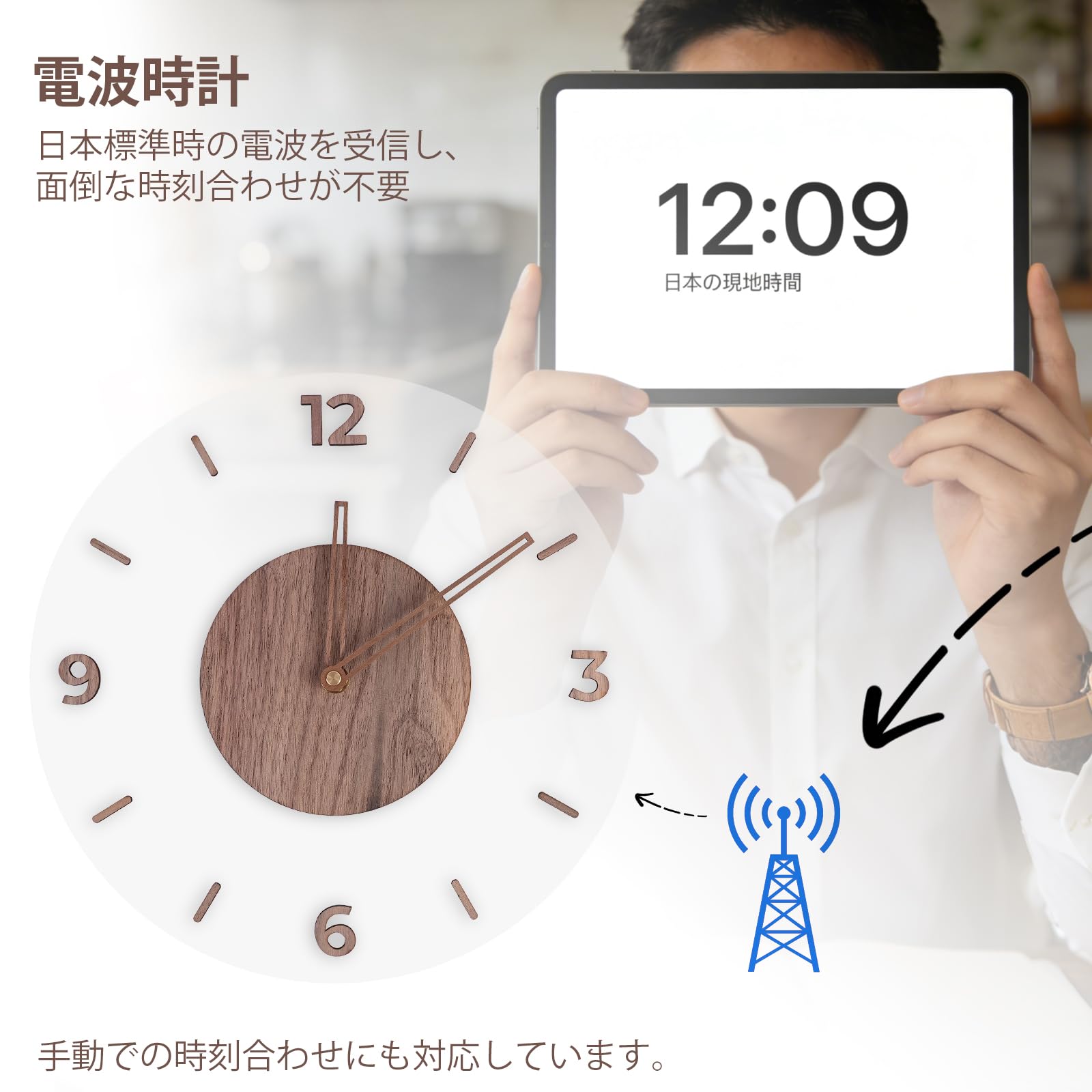 掛け時計 電波時計 静音 おしゃれ シンプル 直径30cm 木目調 北欧 壁掛け 部屋飾り キチン (A)