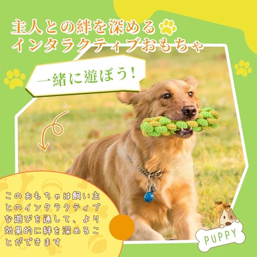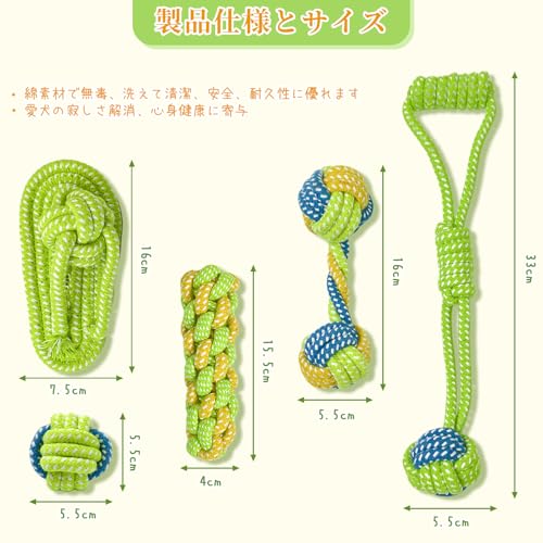 5個 セット 犬ロープおもちゃ 犬おもちゃ 犬用玩具 噛むおもちゃ ペット用 コットン ストレス解消 丈夫 耐久性 清潔 歯磨き 小/中型犬に適用 (グリーン)