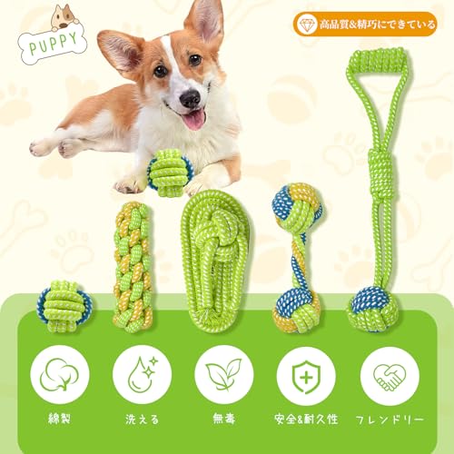 LLUCH犬用ロープ玩具5件セット|犬用おもちゃ人気|宠物撕扯玩具|迷你犬に最適|宠物ギフト Revised text: