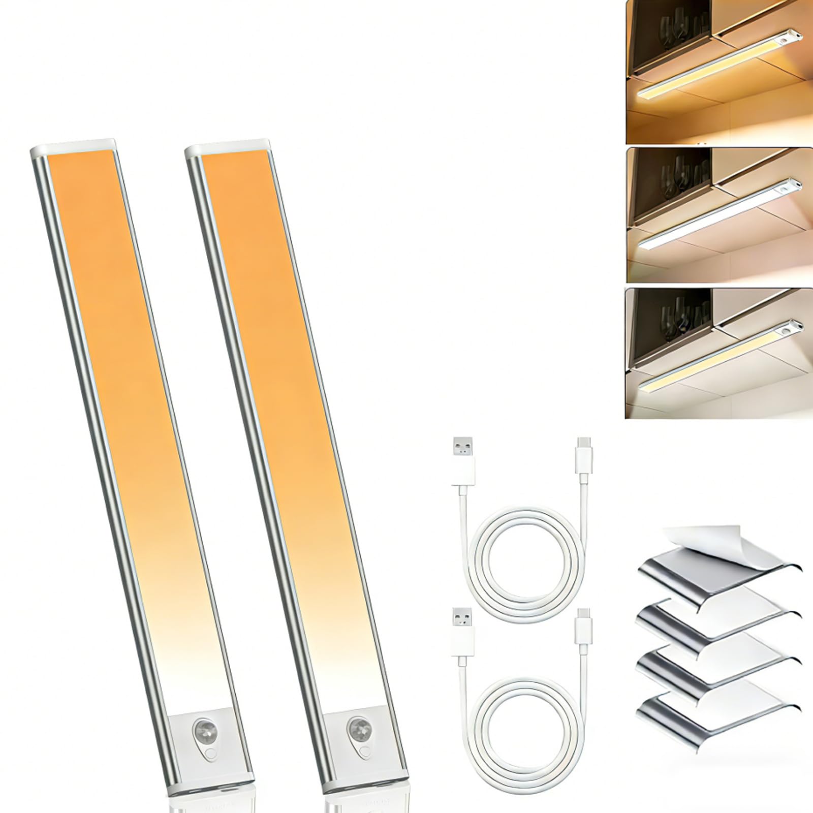 Smiling Shark 人感センサーライト HM02【2025最新・高感度センサー・超薄型設計】高輝度 キッチンライト 室内LED バーライト 30CM 超薄0.9cm アルミ製 暖・白・自然光 無階段・三段階調節 充電式 2000mAh 10時間連続使用 磁気吸着&粘着式 工事不要 記憶機能 手元灯 足元灯 玄関灯 多場面適用 寝室/玄関/階段/廊下/戸棚 日本語取扱説明書 2個入