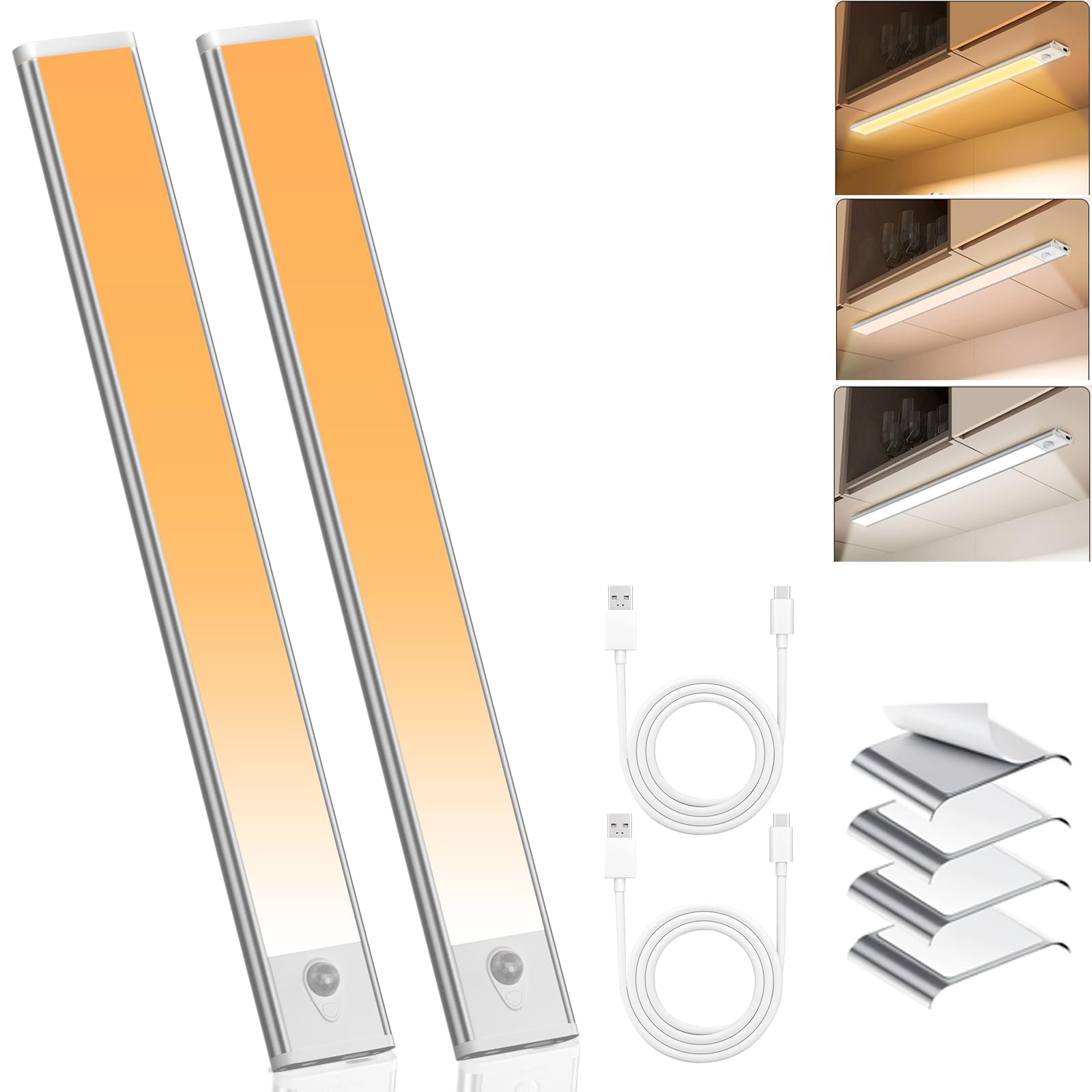 Vividorad 人感センサーライト 室内 2個入り 30CM LEDバーライト 2200mAh 3色調光 TypeC充電式 リモコン操作 マグネット着脱式 手元灯 足元灯 フットライト 配線工事不要 省エネ 長寿命 高感度 高輝度 玄関/棚/物置/寝室/廊下/キャビネット/部屋/階段 照明用 3000K/4500K/6000K 電球色 昼白色 昼光色調整 (2PCS 30CM)
