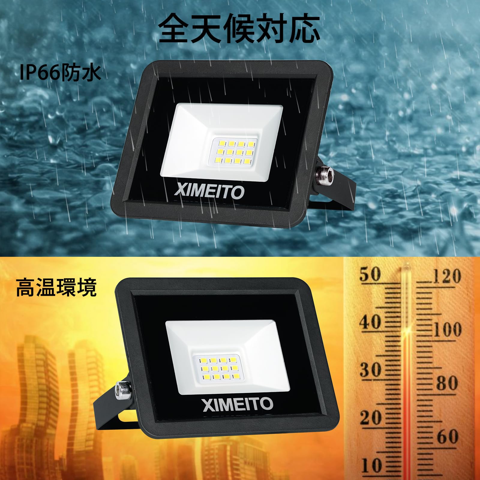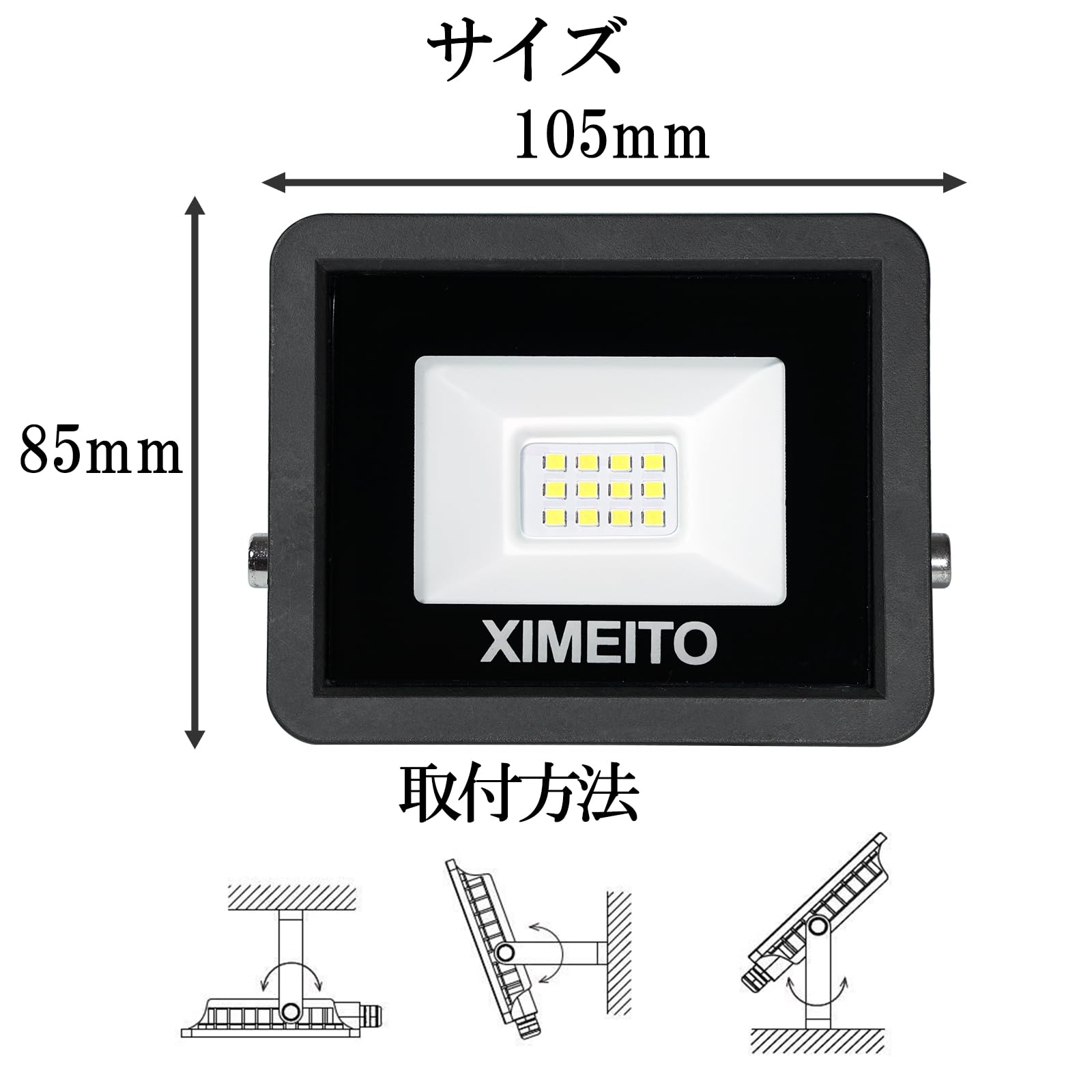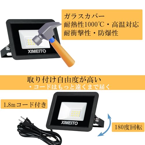 XIMEITO LED投光器 10w 昼光色 1200LM 6500K 1.8コード IP66防水 120°広角 100V対応 ワークライト 工事用 ledライト 作業灯 看板灯 外灯 駐車場用 倉庫照明 船舶 屋内 屋外作業 BBQ用 100w相当 100-240V適用 豪雨/豪雪対応 2セット