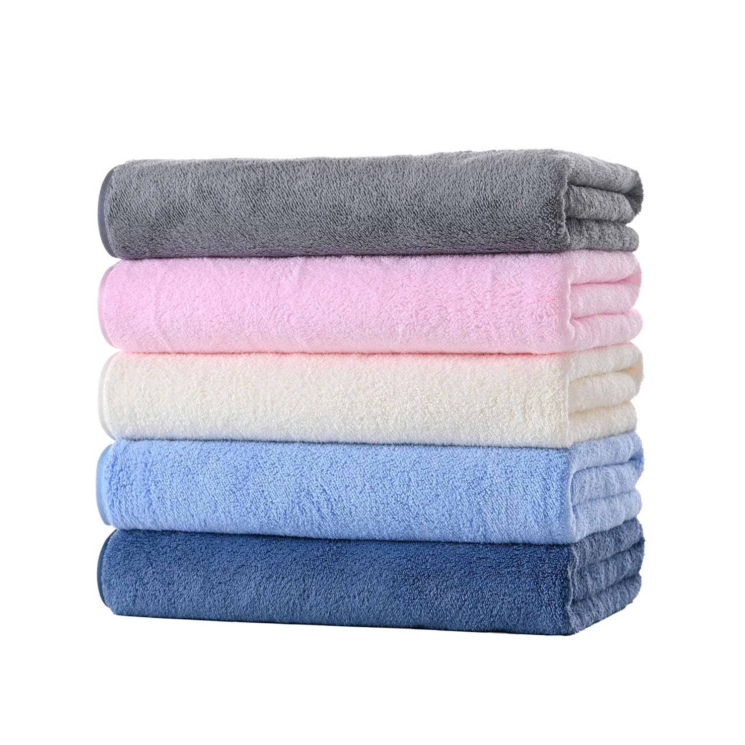バスタオル マイクロファイバー 大判 60*120cm 5枚セット ふわふわ 柔らかい肌触り 高速吸水 速乾 耐久性 抗菌防臭 (ベビーピンク)