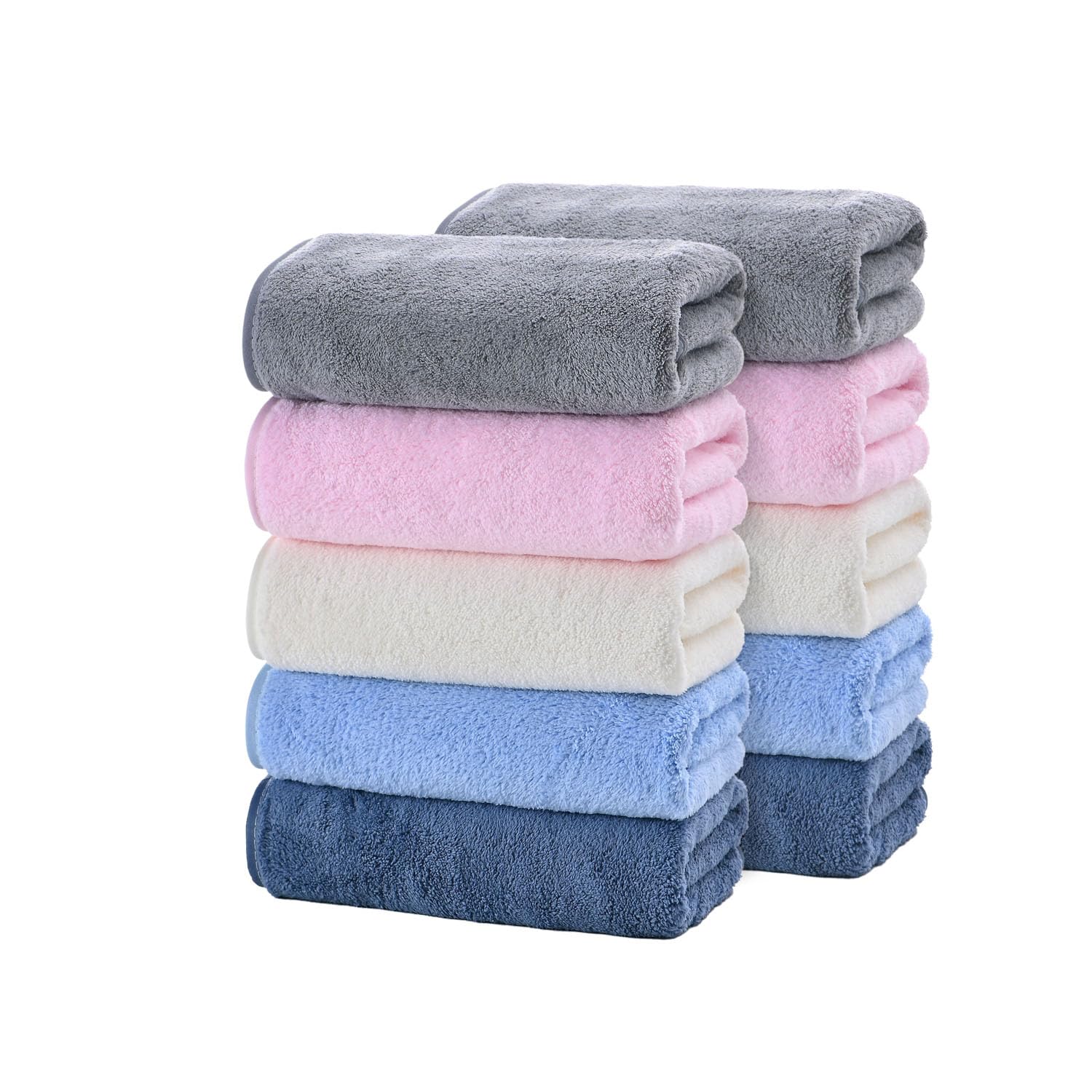 フェイスタオル マイクロファイバー タオル 10枚セット 約75×35cm 吸水 速乾 ふわふわ 肌触り 抗菌防臭 (5色)