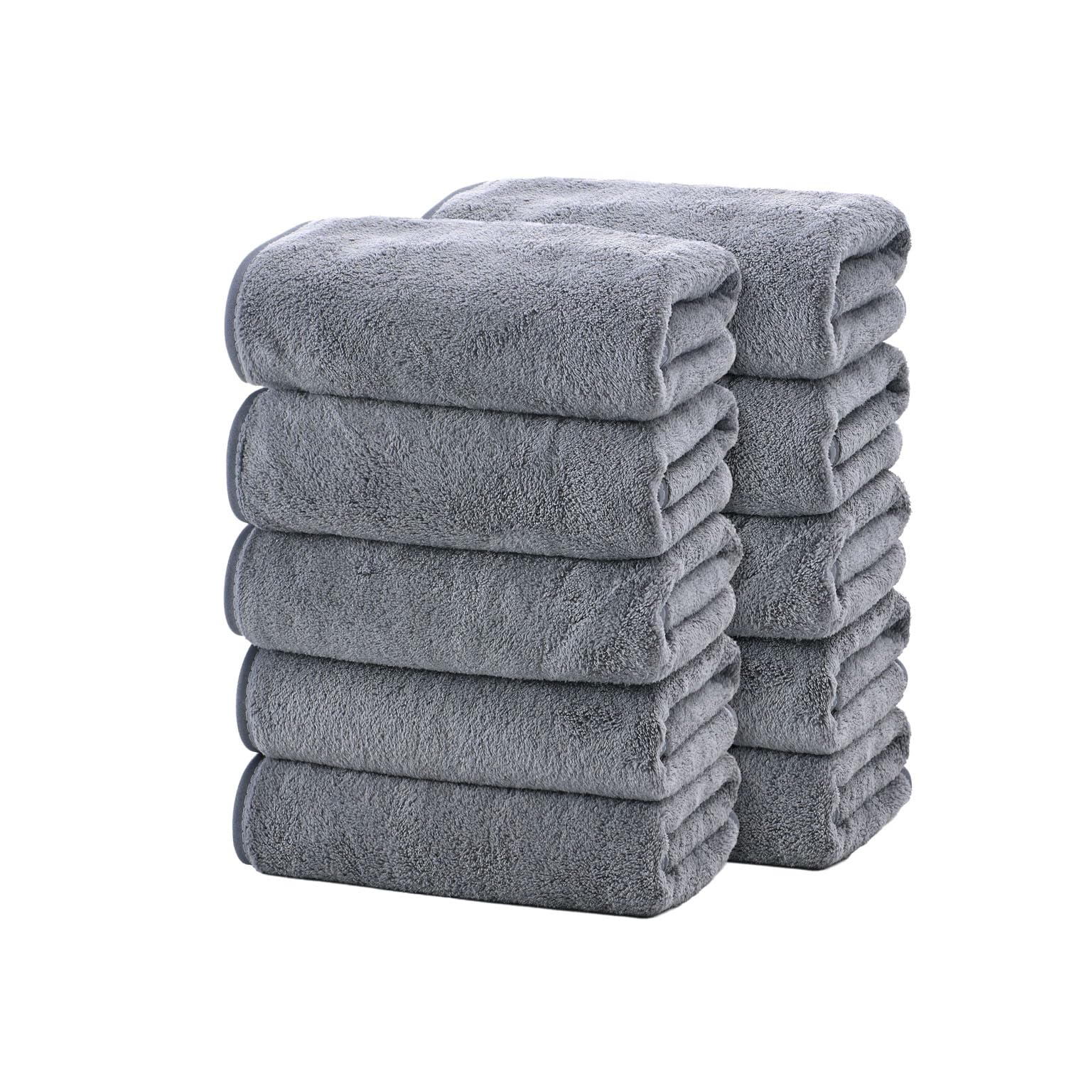 フェイスタオル マイクロファイバー タオル 10枚セット 約75×35cm 吸水 速乾 ふわふわ 肌触り 抗菌防臭 (グレー)