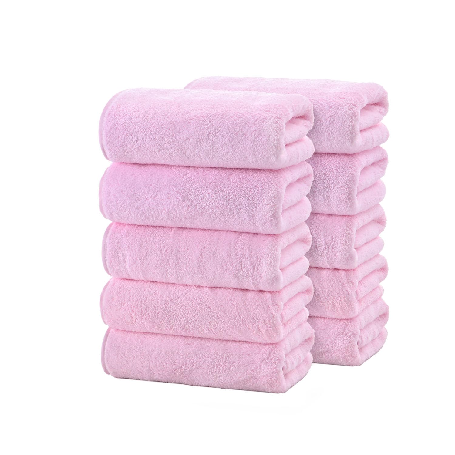 フェイスタオル マイクロファイバー 10枚セット タオル 約35X75cm ふわふわ やわらか 吸水 速乾 耐久性 家庭 ホテル サロン スポーツ 業務用 (ピンク)