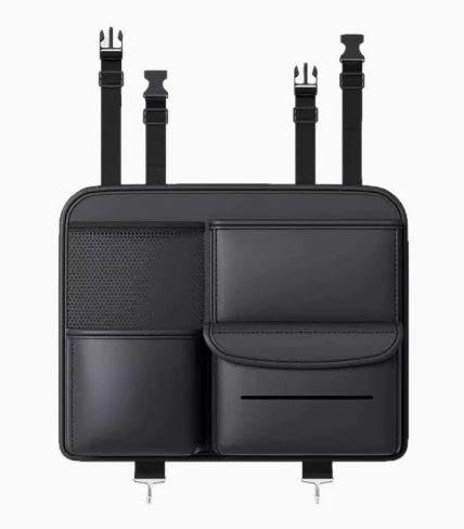 車用収納袋 車用シートバックバッグ 後部座席用収納袋 助手席収納ボックス ウォーターカップホルダー ティッシュボックス 多機能収納袋 フック付き 車用品 (黑)