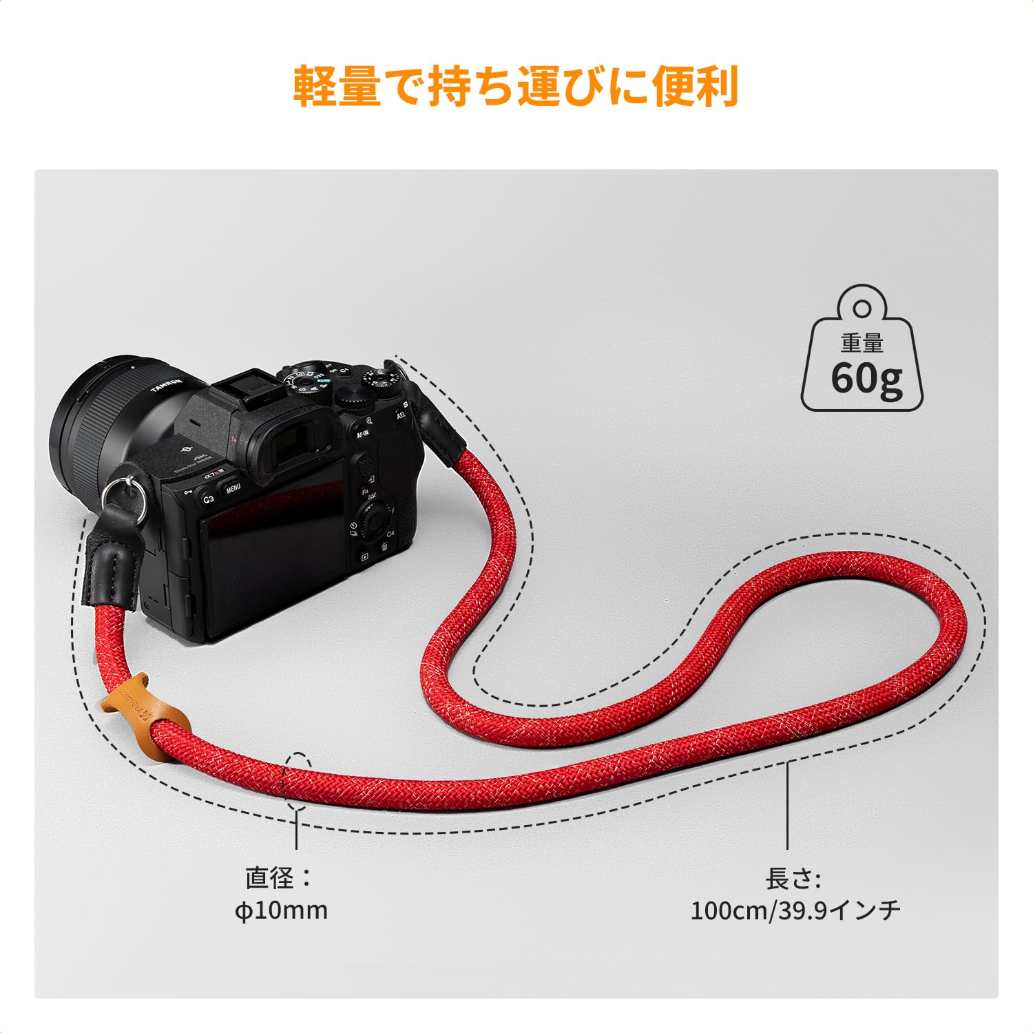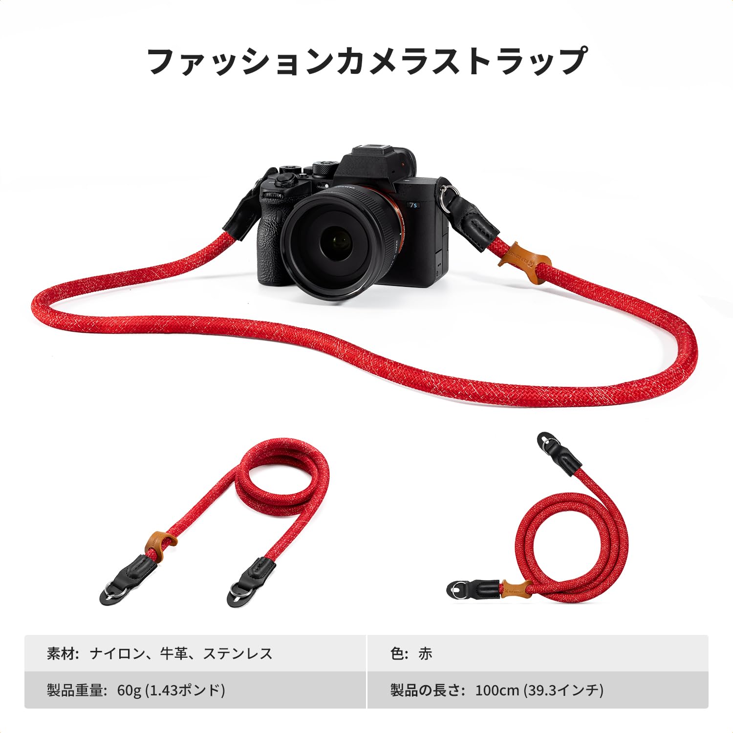 [K&F CONCEPT] カメラネックストラップ カメラストラップ レザーアクセサリー 軽量 速写ストラップ クライミングロープ製ショルダーストラップ おしゃれ一眼レフ/ミラーレス/デジカメ/デジタルカメラ用(赤)