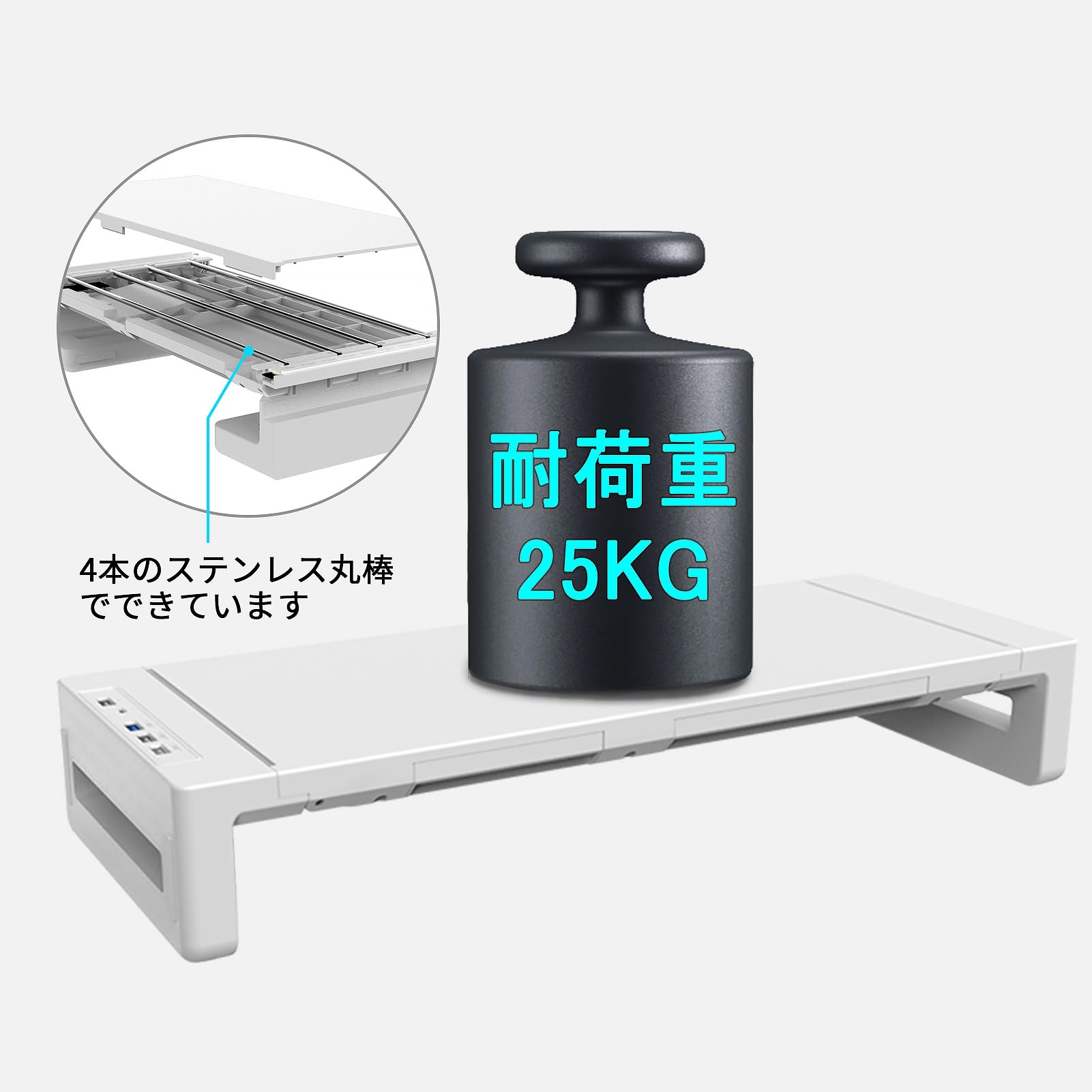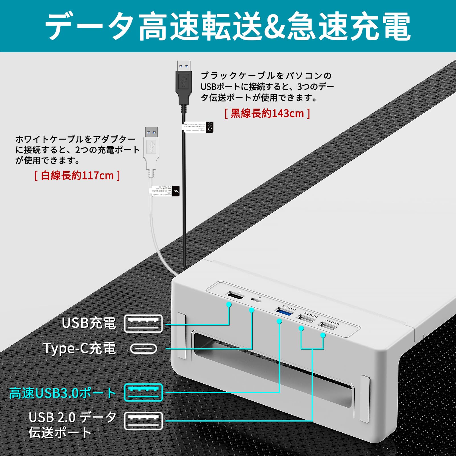 HUASUN モニター台 USB2.0/3.0データ転送付き 机上台 USB/TYPE-C充電付き 折りたたみ可能 ディスプレイ 台 引き出しとスマホホルダー付き パソコン 台 幅3段階可変 モニタースタンド ノートパソコン/プリンター/iMac/タブレットパソコンに適用 耐荷重25kg