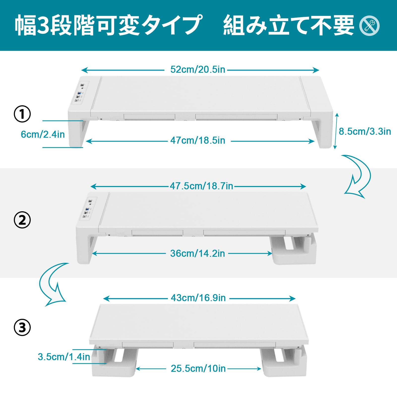 EAYHMモニター 台 卓上 USBドッキング付き PC 机上 台 USB/TYPE-C急速充電対応 折りたたみ可能 パソコンスタンド 引き出しとスマホホルダー付き パソコン 台 幅3段階可変モニタースタンド 耐荷重25Kg (白-USBドッキング付き)