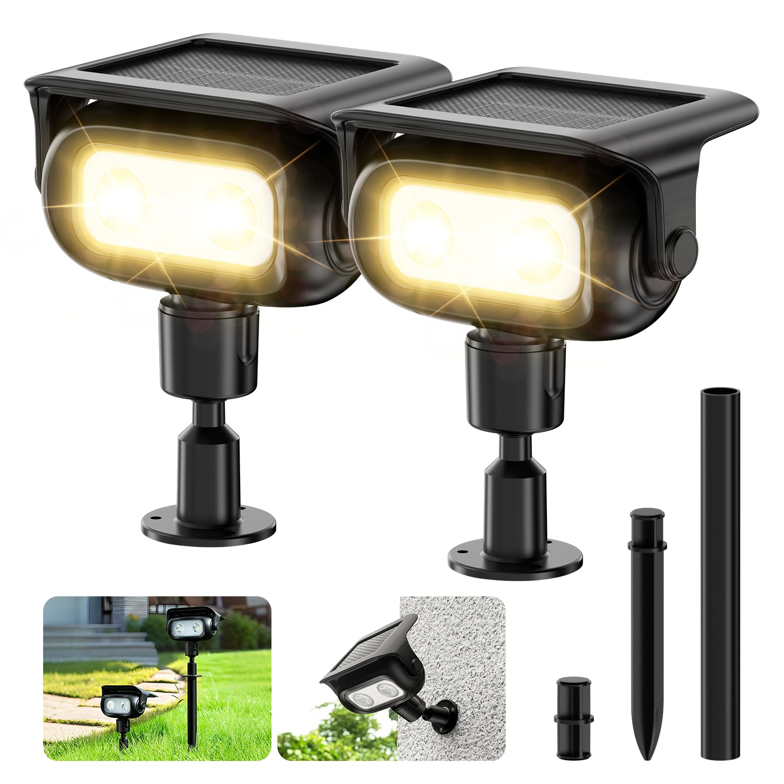 Smiling Shark ソーラーライト WS01【多角度調節可能・延長ポール付き・2WAY設置】高輝度ソーラースポットライト 高感度センサーライト 500LM 4モード切替 高耐久 HPBC高効率セル IP65防水 1200mAh 10時間連続点灯 取り付け簡単 地置き&壁掛け 屋外照明 外灯 ガーデン/駐車場/玄関/ベランダ 防犯対策 (2個入り, 暖光)