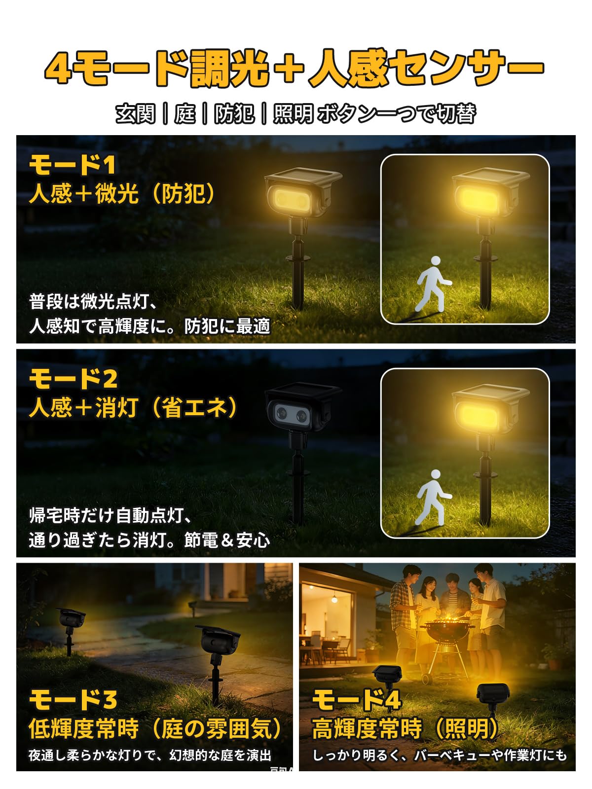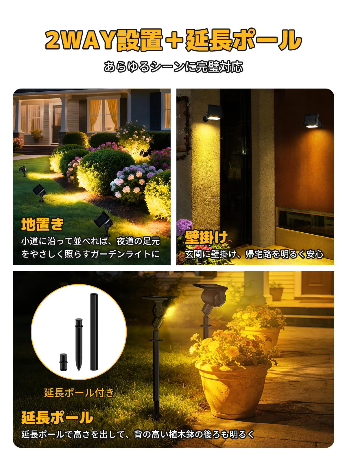 NFESOLARソーラー ガーデンライト スポットライト 電球色 led 屋外 分離式 自動点灯 消灯 IP66防水 庭園照明 防犯対策 景色照明 アウトドア 玄関先 庭 車道 芝生 防水 防犯 看板ライト 太陽光 歩道
