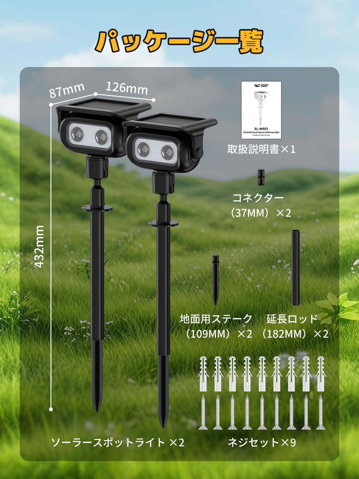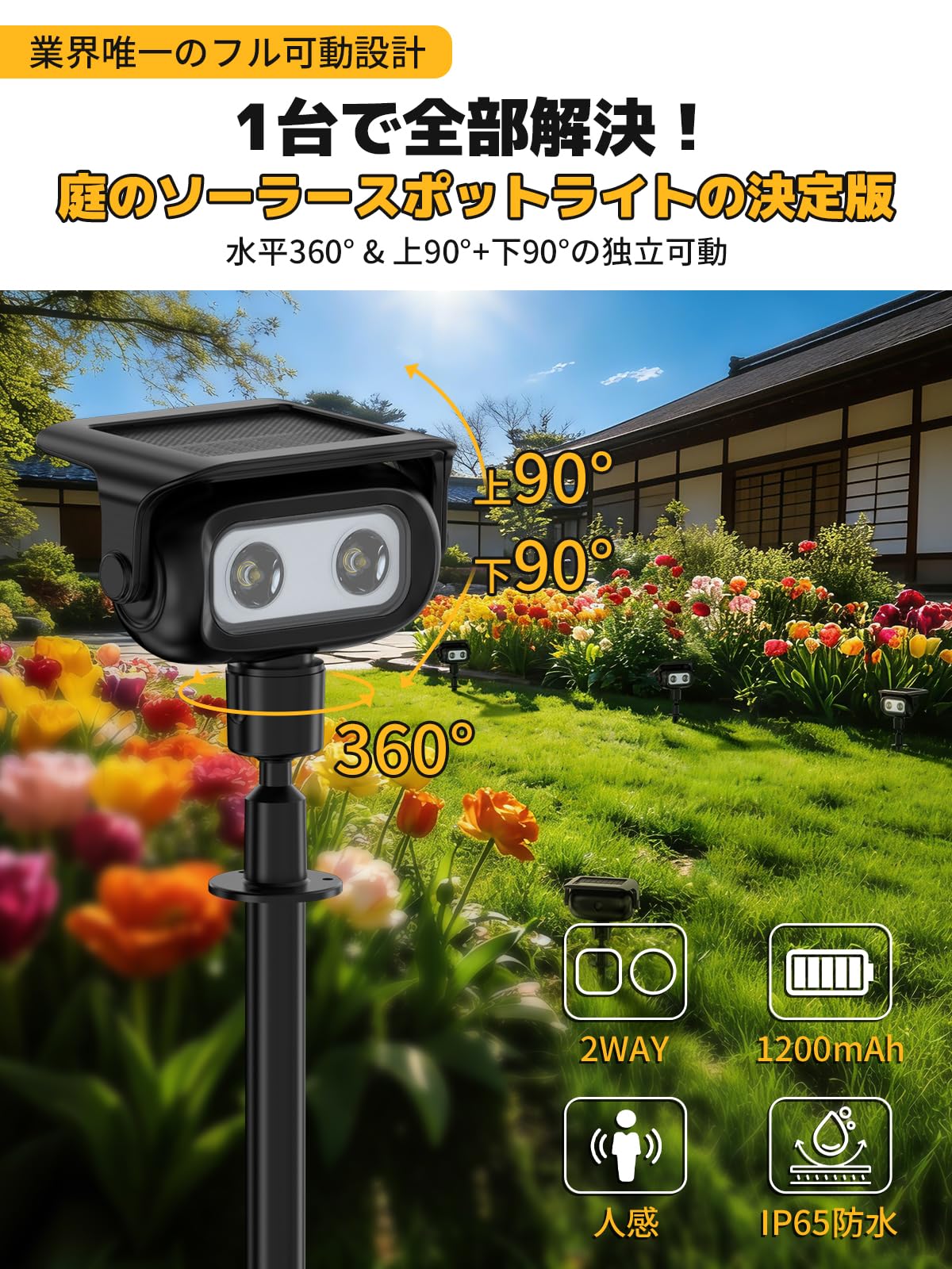 NFESOLAR ソーラー ガーデンライト スポットライト ソーラーライト屋外 庭園照明 明暗センサー 自動点灯/消灯 2200mAh大容量 IP67防水 防犯 防災 IP65 夜間自動点灯/昼間自動消灯 地中埋込型 パス 芝生/車道/壁掛け/歩道/植木/玄関先 ライトアップ アウトドア スポット